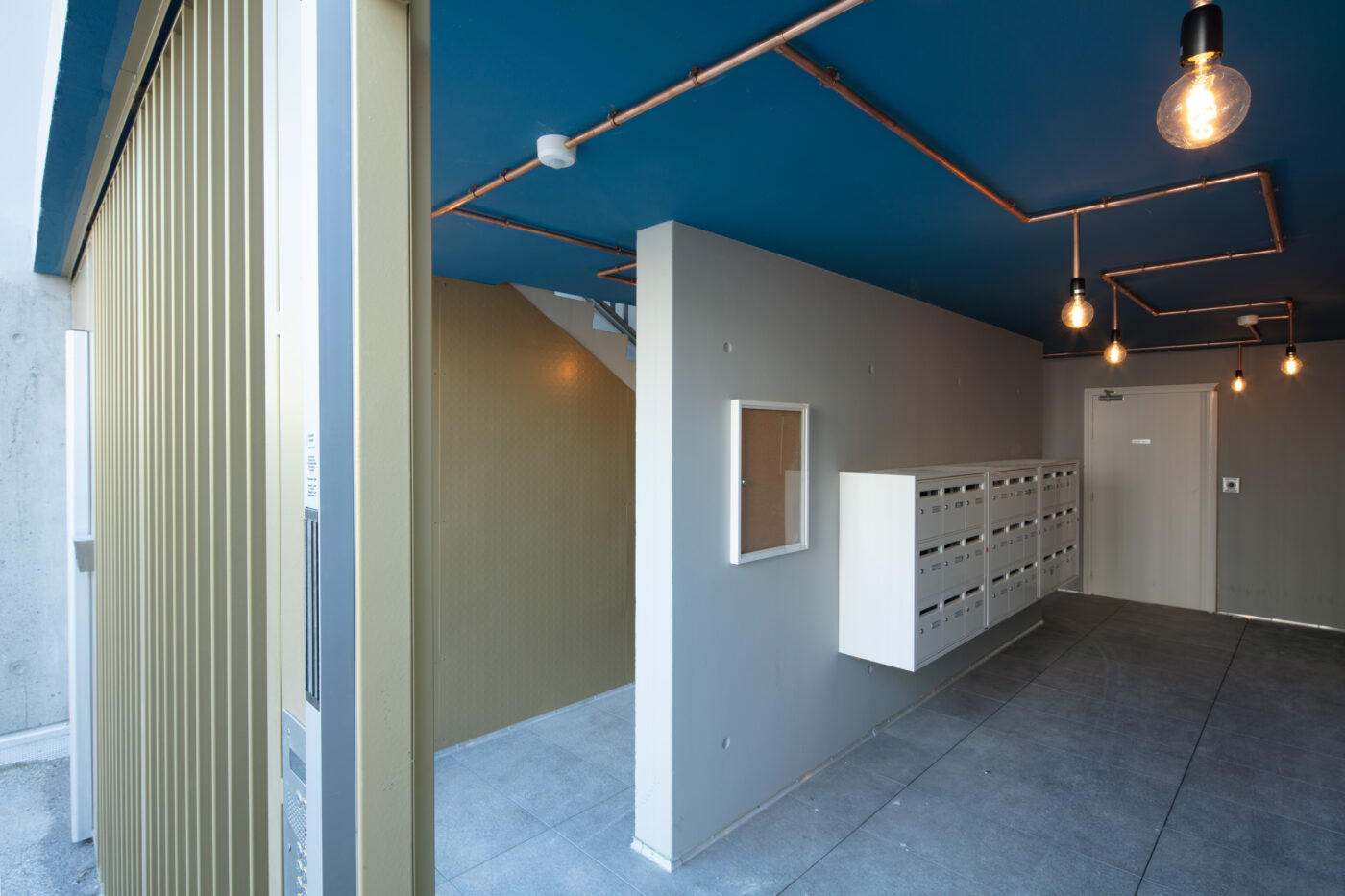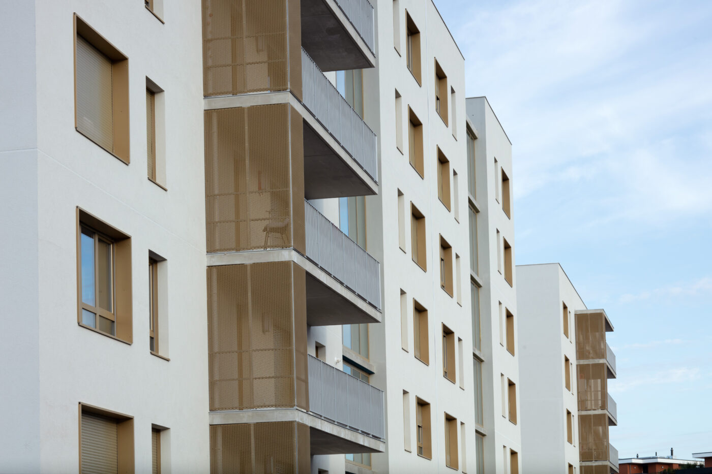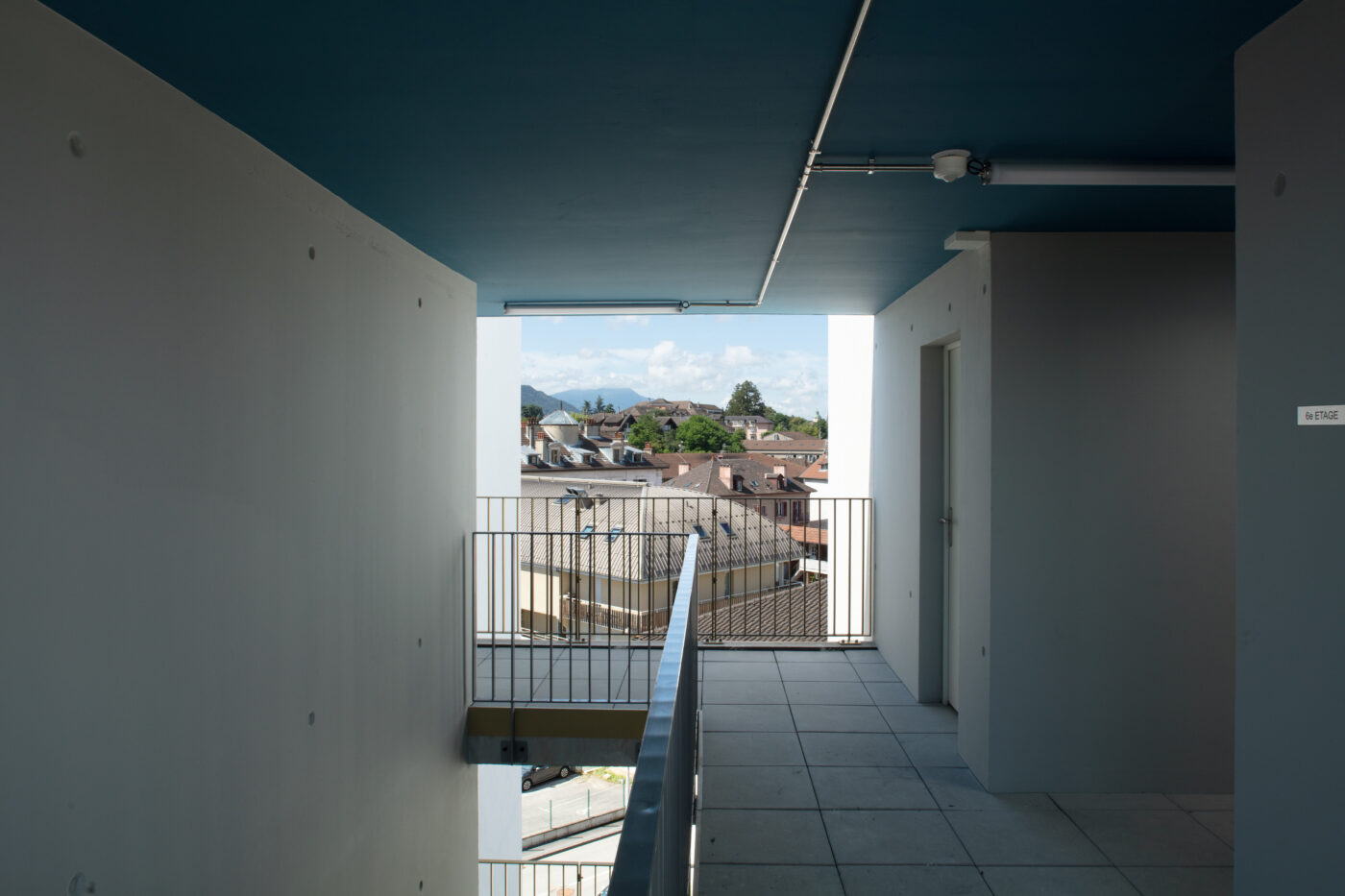 Le corps principal se développe sur six niveaux affirmant une grande régularité dans les percements. Cette régularité est également identifiée comme une marque d’une architecture plus urbaine, qualifiant le tissu à venir de cet îlot en mutation.