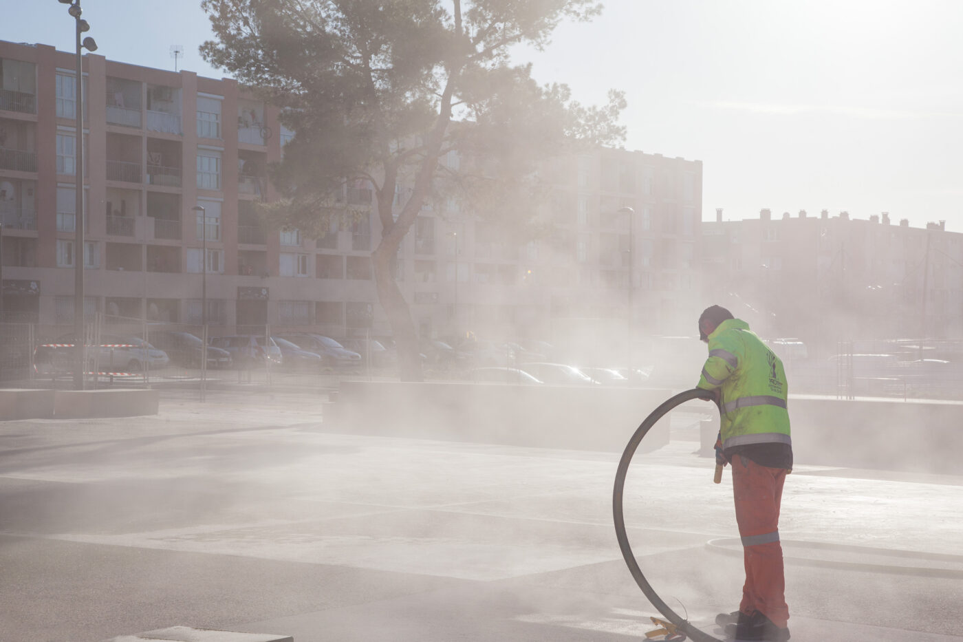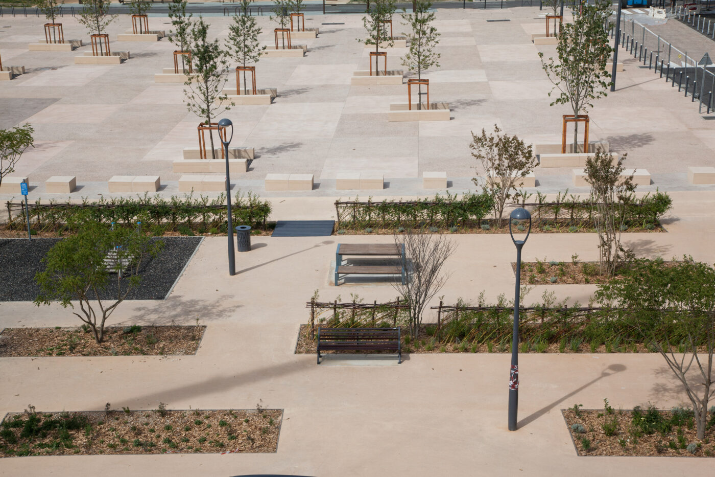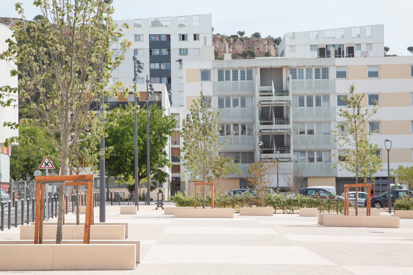 Notre réflexion sur les espaces publics de la première étape du PRU nommé «Cœur de Projet» se réfère aux horizons – paysages majeurs et identitaires de la ville. Le plateau de l’Arbois et l’étang de Berre. L’avenue des Salyens et le marché forain du vendredi sont réorganisés au profit des transports collectifs et des modes doux de déplacement.