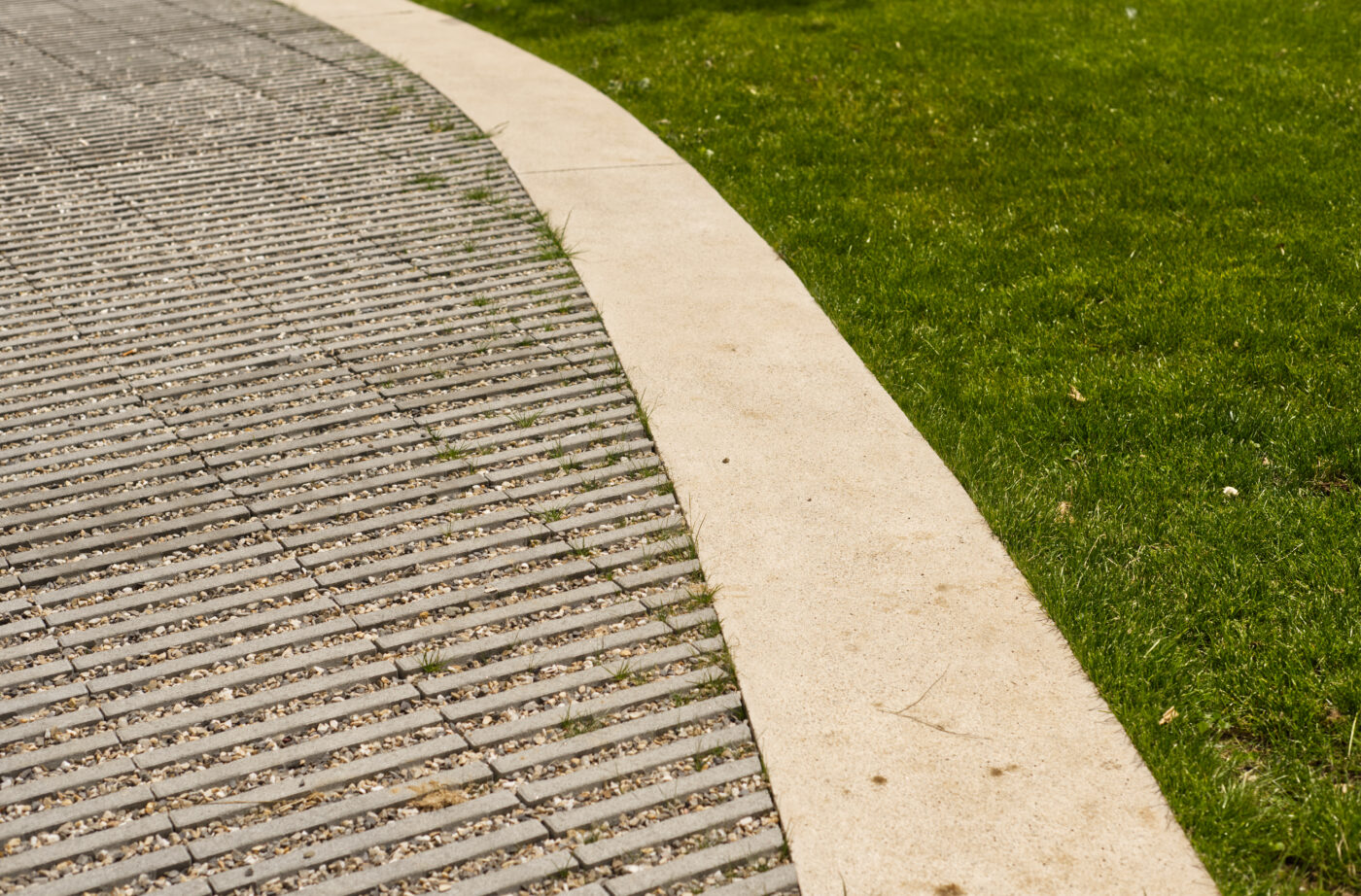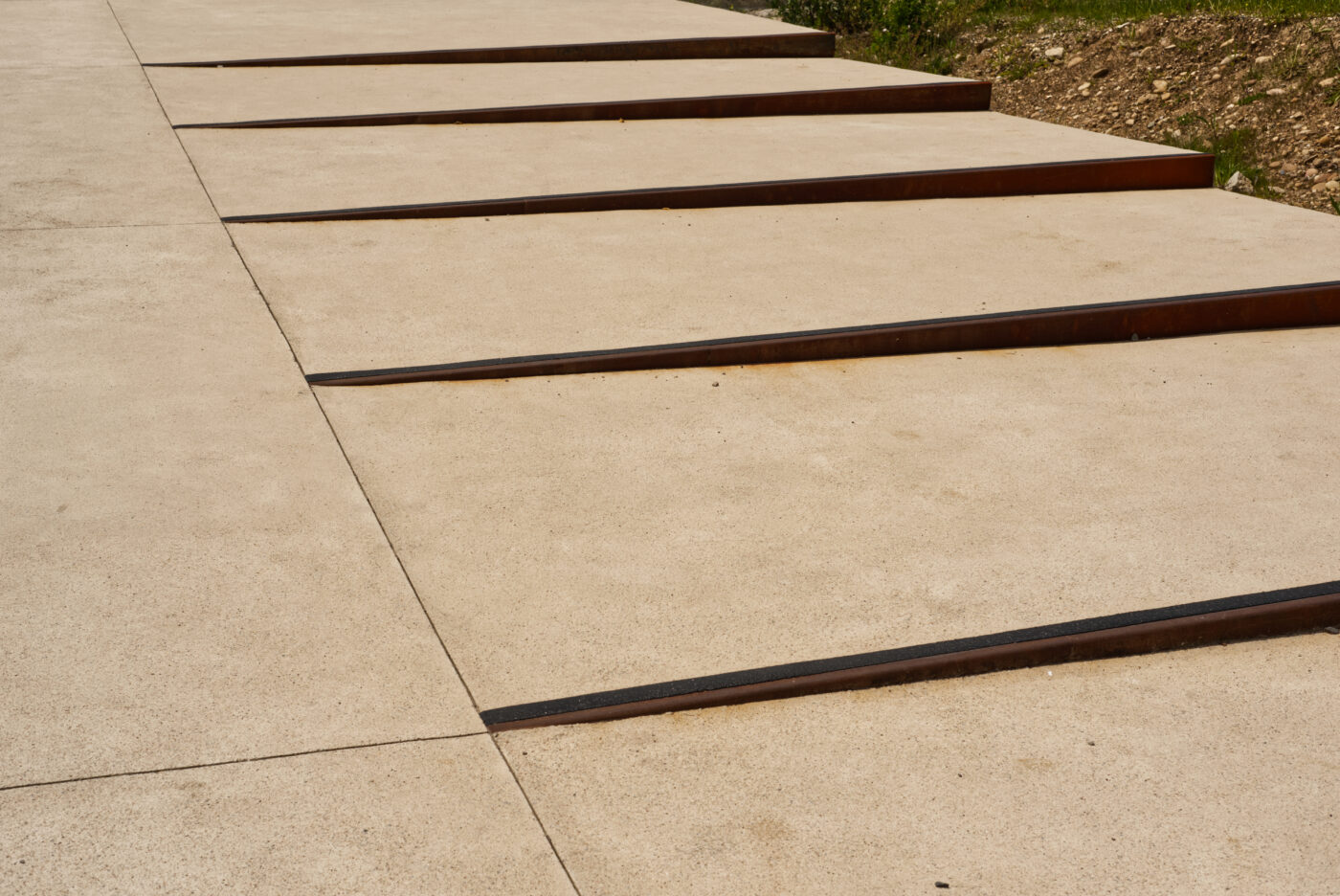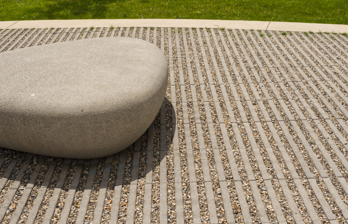 La sculpture du socle propose une gestion paysagère des eaux pluviales avec une mise en scène du chemin de l’eau, intercepté et guidés par des sillons menant aux îles fertiles. Un parquet de béton percé de sillons poreux complète ce dispositif qui place l’infiltration au cœur du projet.