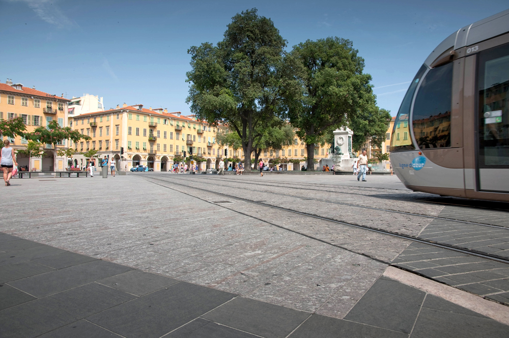 Le projet de déplacement vise à repartager l’espace au profit des piétons, à procéder à une réorganisation radicale des flux routiers, à réussir l’intermodalité. La place accueille le site propre de la 1ère ligne de tramway de Nice.