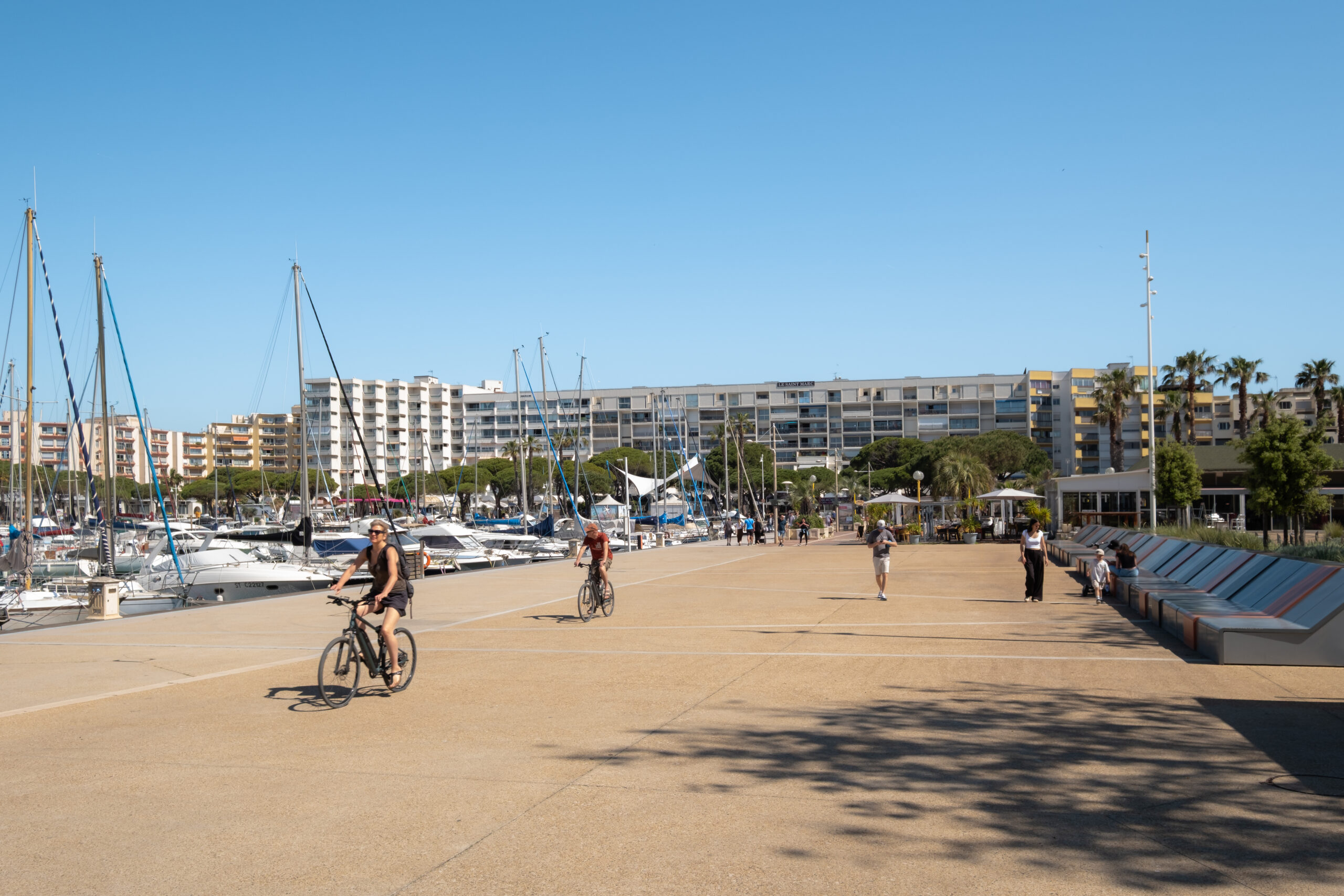 L’objectif était de relier l’esplanade du port et la place Cassan par le Quai Auguste Meynier aménagé sur toute sa longueur. Afin d’améliorer les mobilités douces, le Quai Auguste Meynier Nord a été mis à sens unique pour les automobilistes en direction de la place Cassan et une piste bidirectionnelle a été aménagée dans le prolongement de celle de l’avenue des Comtes de Melgueil jusqu’à la plage.