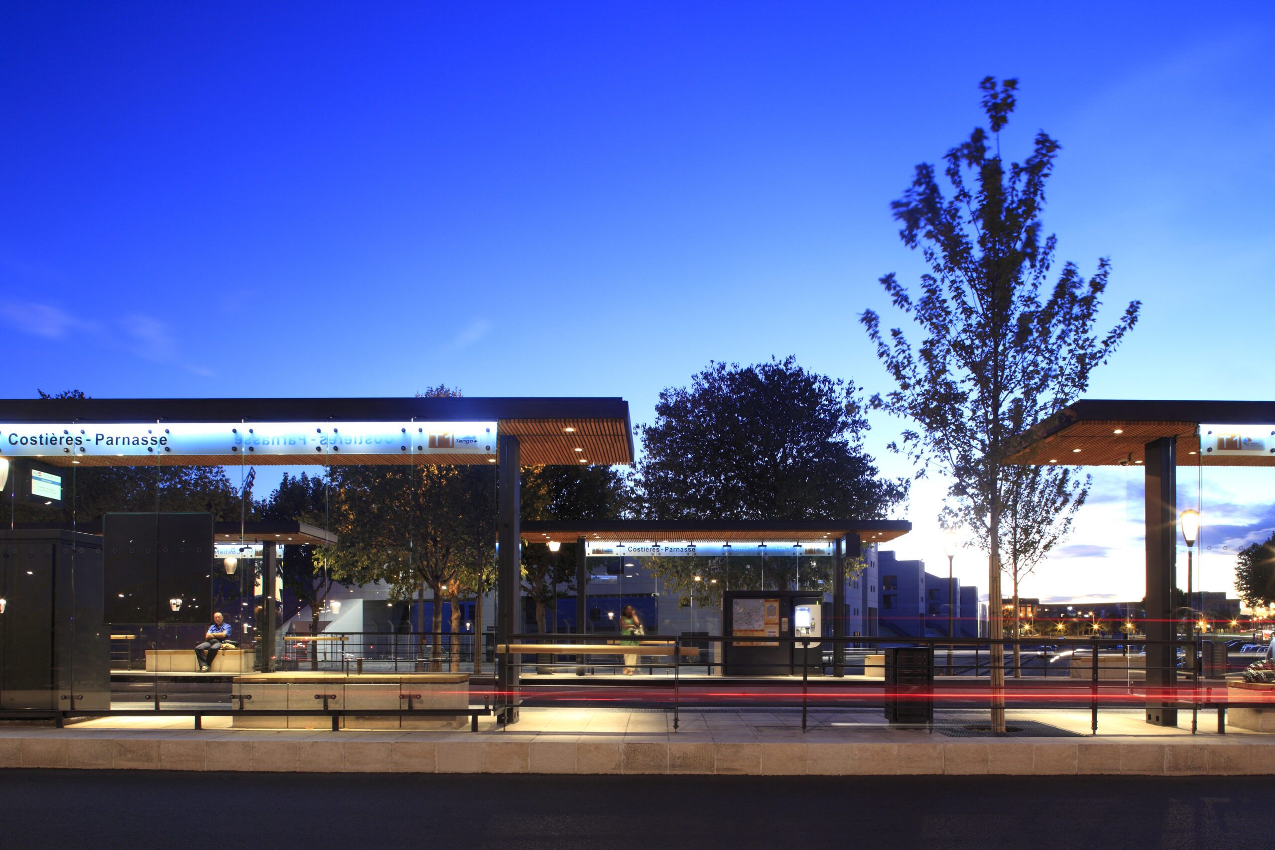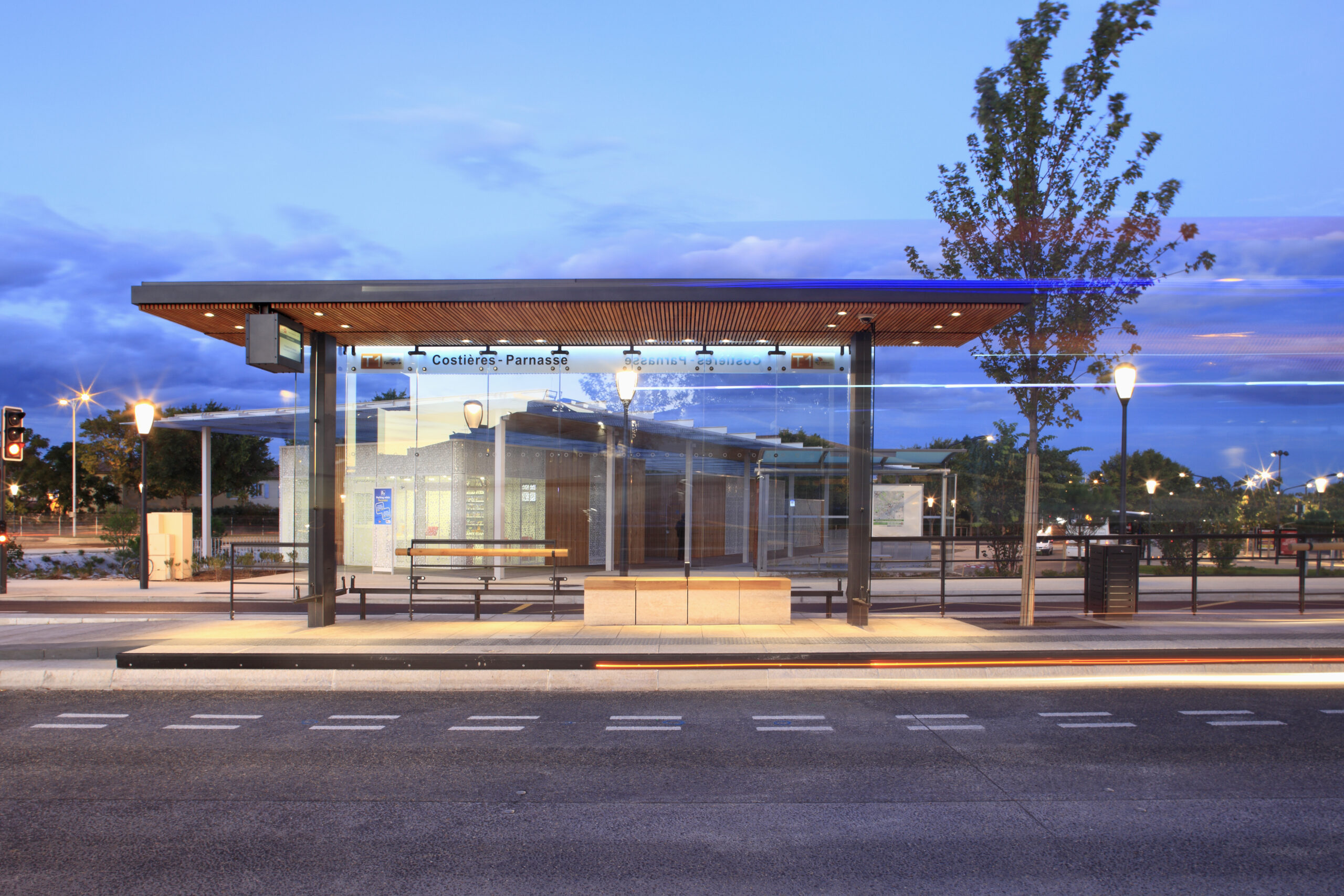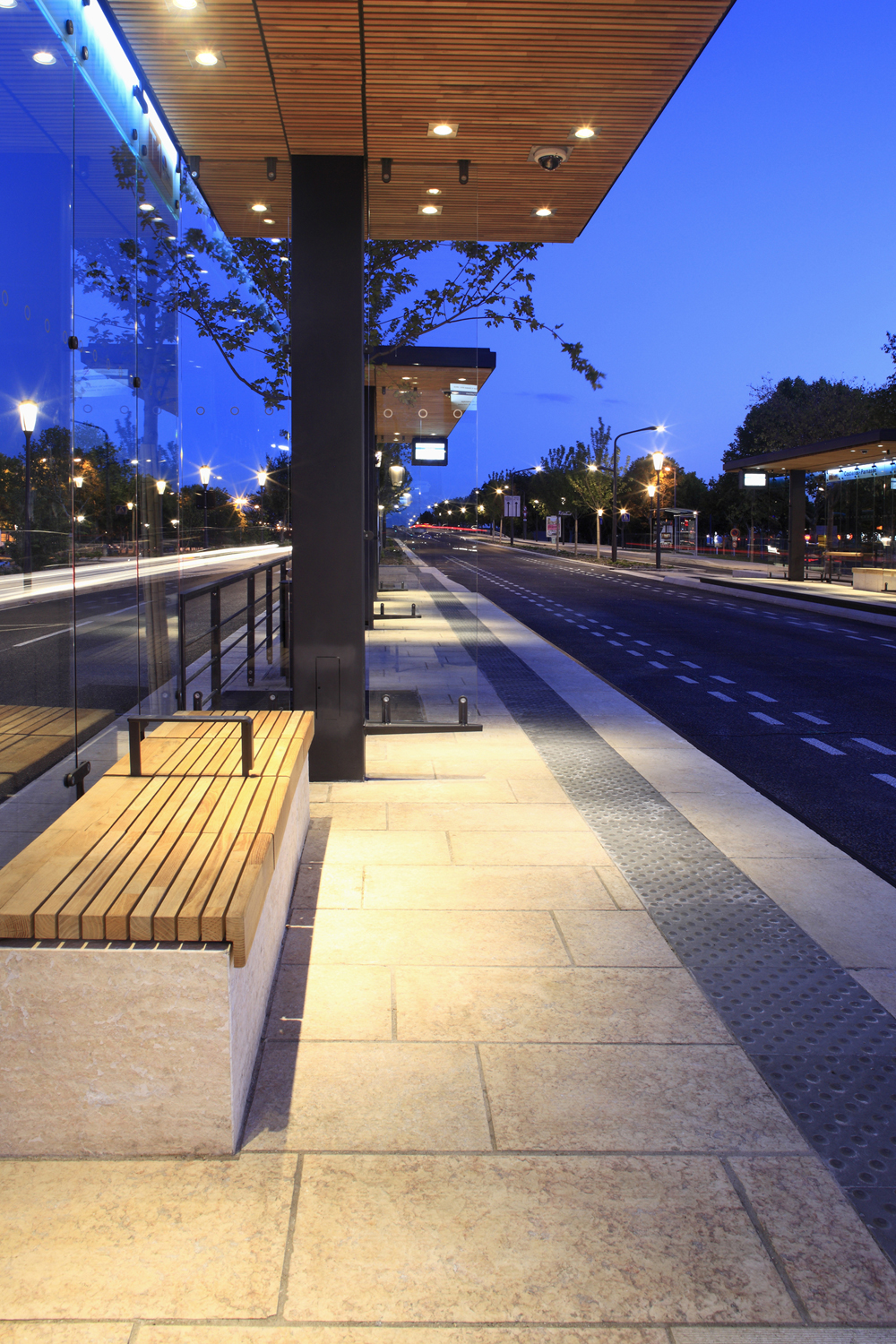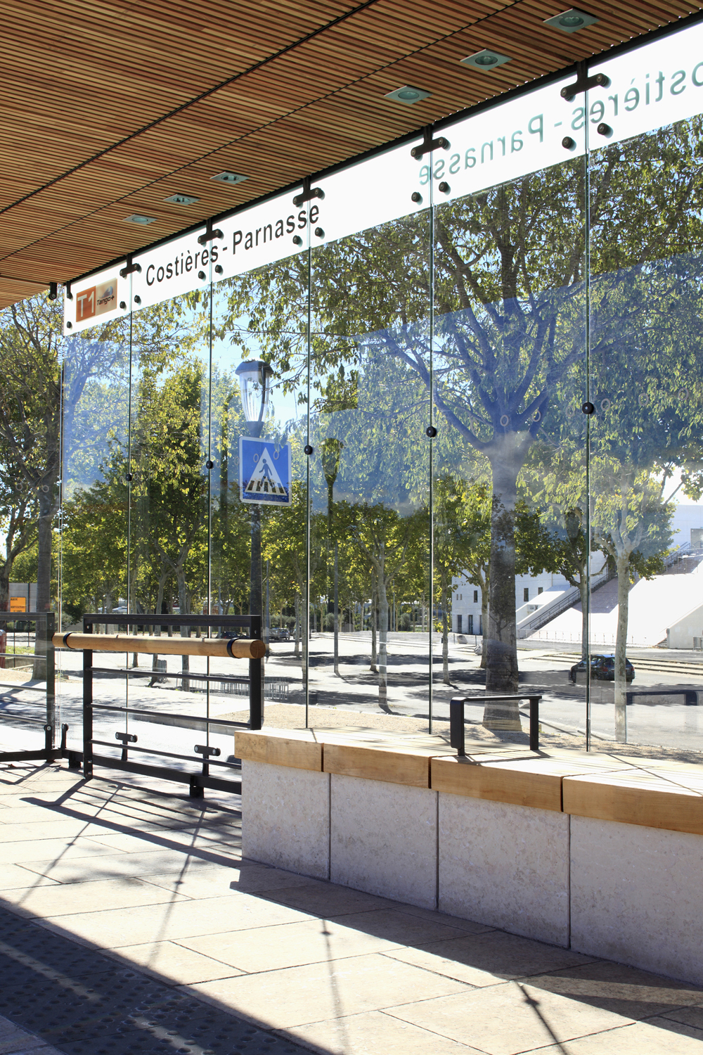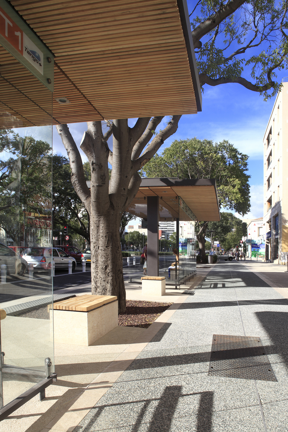 plan se dessine la question de l’identité du réseau. Cette identité repose sur: un matériau clair pour le revêtement des espaces piétons; le design et le traitement des stations et du mobilier. Le dessin est intemporel : c’est un archétype, au dessin épuré.