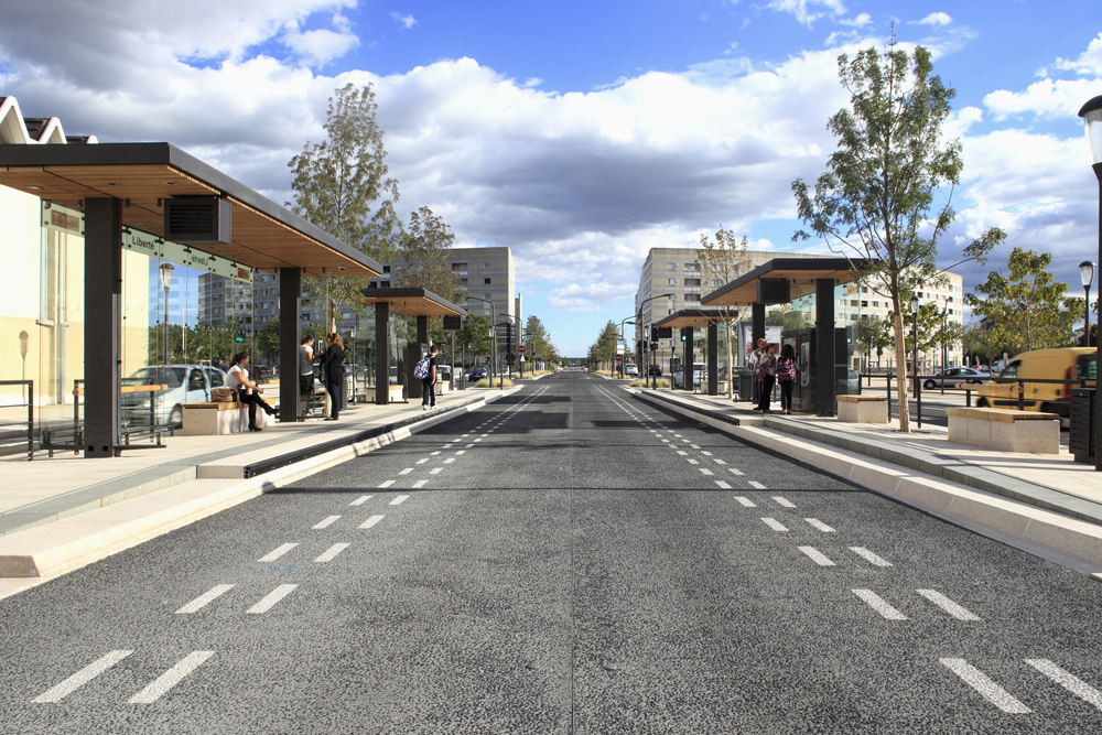Il contribue à renforcer et à mettre en valeur l’armature viaire de l’agglomération. Le site propre donne à l’armature urbaine une identité nouvelle. «La ligne» est une entité à elle seule et le citadin se situe par rapport à son parcours. Le BHNS est un facteur d’identification au concept d’agglomération, d’unification de la ville.