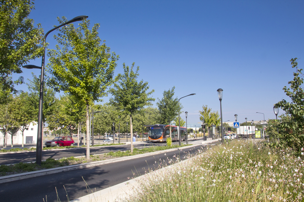 Nîmes est une belle ville historique. Le site propre modifie la voirie et donc l’image de la ville, il aide à interpréter le sens de ses espaces : il marque les perspectives rythmées par les alignements d’arbres, les espaces verts, les forces typiques et spécifiques de ses quartiers centraux et périphériques, ses étendues et ses espaces de réserve.