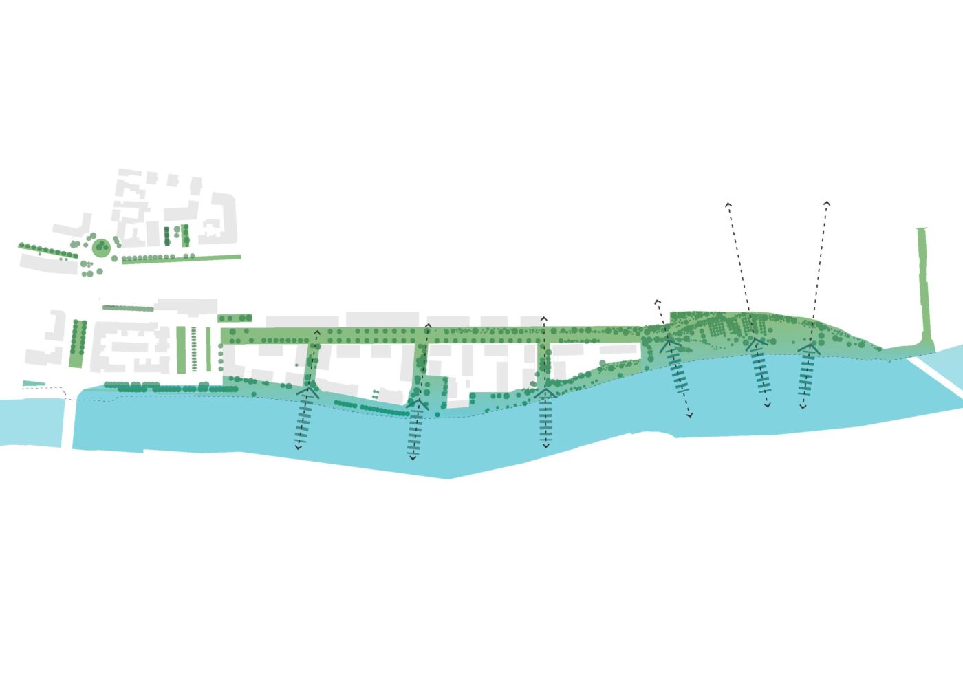 Le potentiel paysager et patrimonial remarquable du quartier, aujourd’hui inexploité, laisse place à une trame renouvelée, à même d’ancrer ce quartier dans le coeur d’agglomération au travers :