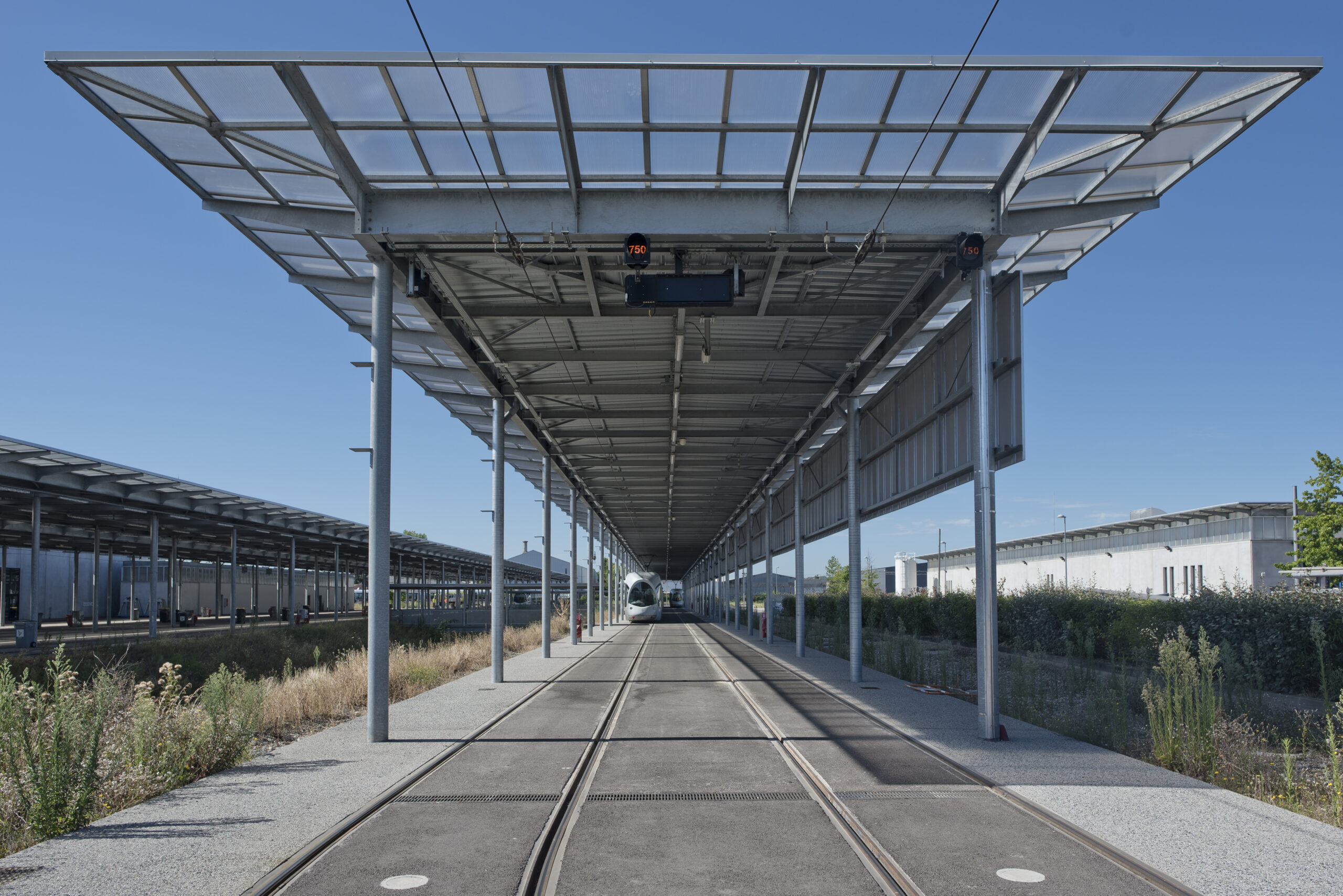 Il s’agit d’un programme d’extension d’une zone de remisage en deux parties : prolongement des voies existantes et de leur couverture (2) ; et création de nouvelles voies (1) et de leur couverture.