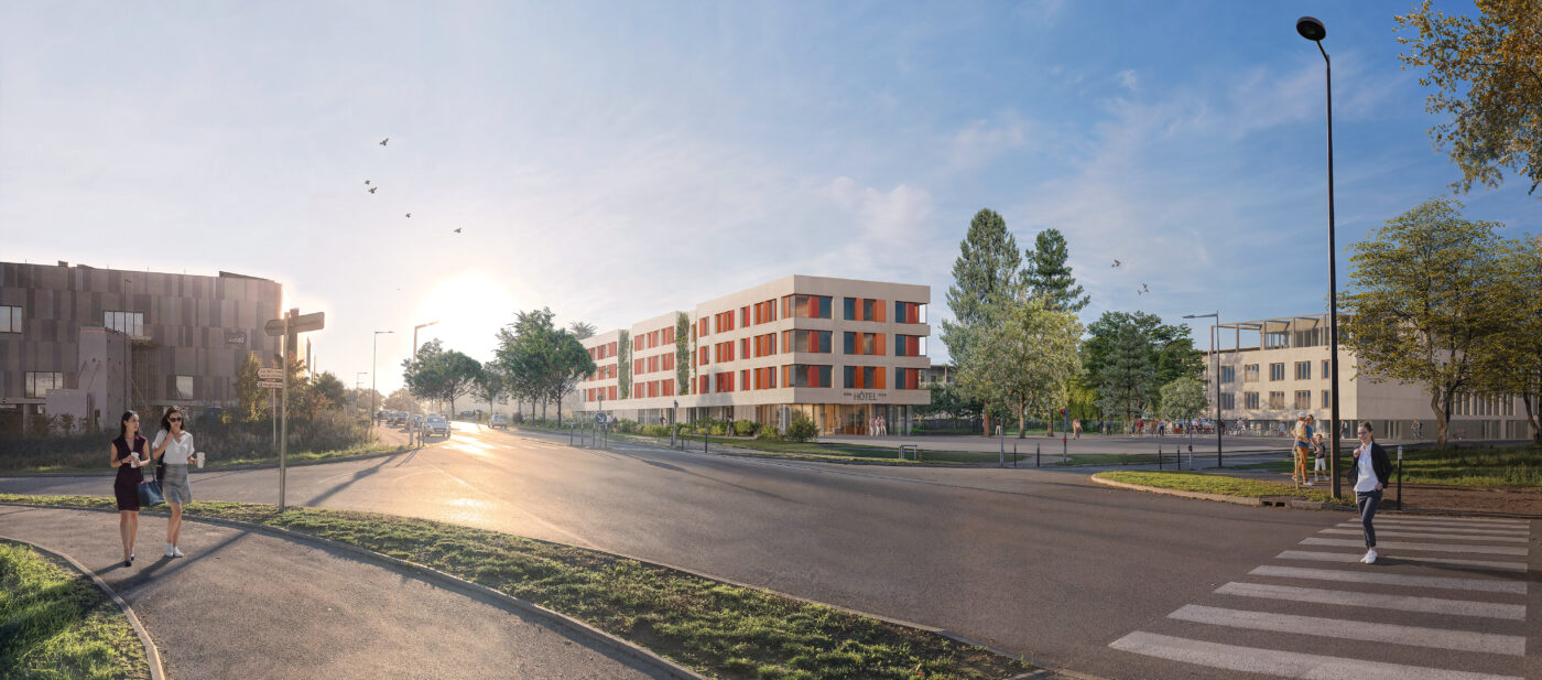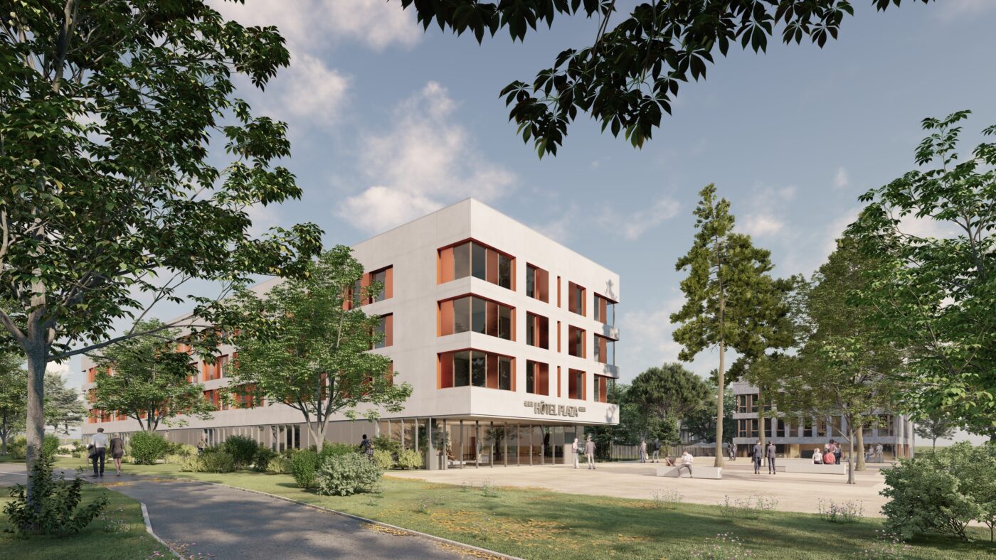 Programme : A proximité de la frontière Suisse et de l’aéroport de Genève, le nouveau projet propose de renouveler une offre de services mixant les usages autour de l’hôtellerie, du coworking et du sport. Le projet comporte une résidence hôtelière de 295 chambres avec espaces coworking, restaurant, espaces communs, un hôtel de 141 chambres, un restaurant indépendant et un bâtiment à usage d’activité.