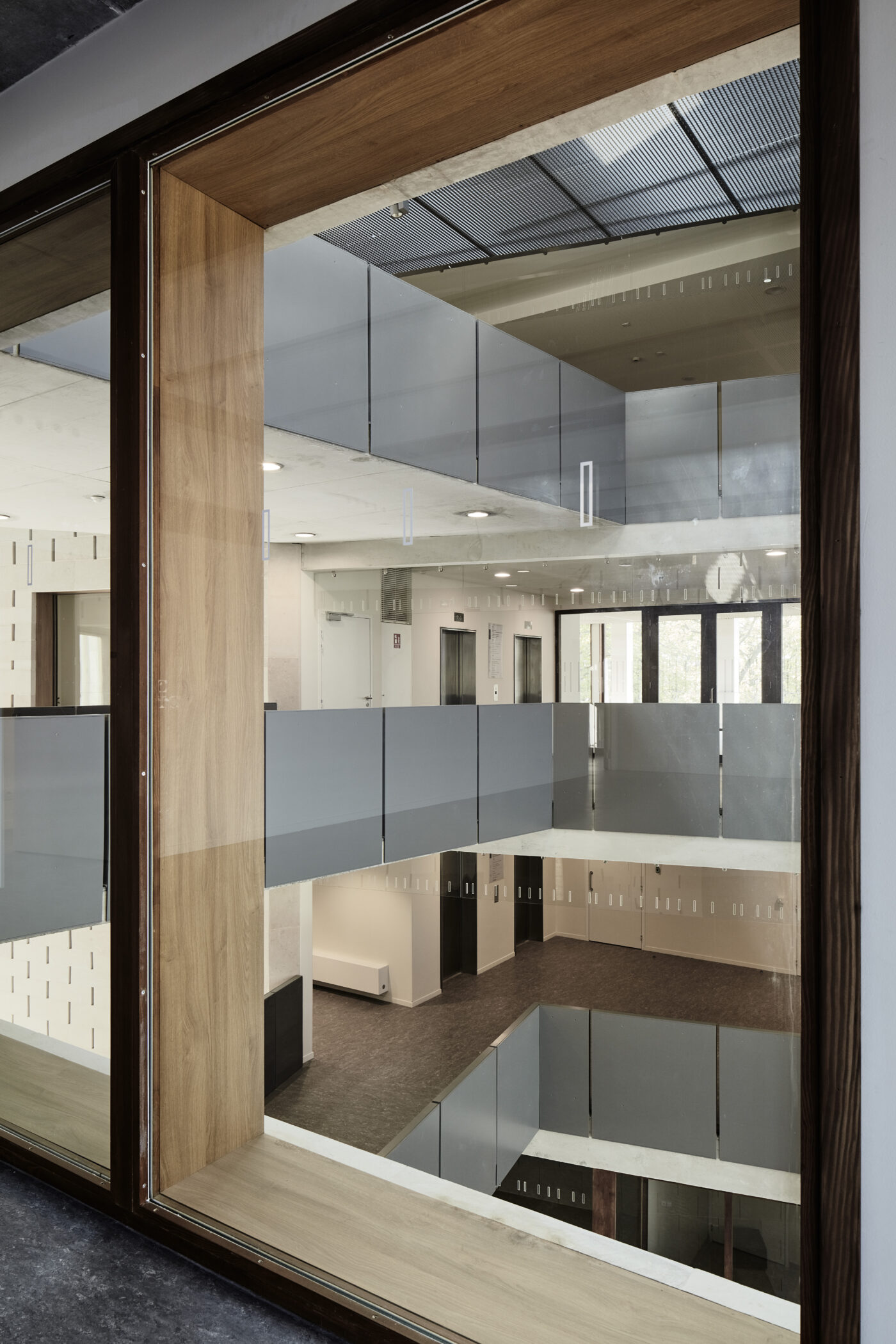 Le béton clair est utilisé en façade pour marquer horizontalement les différentes fonctions et adoucir la géométrie du bâtiment.