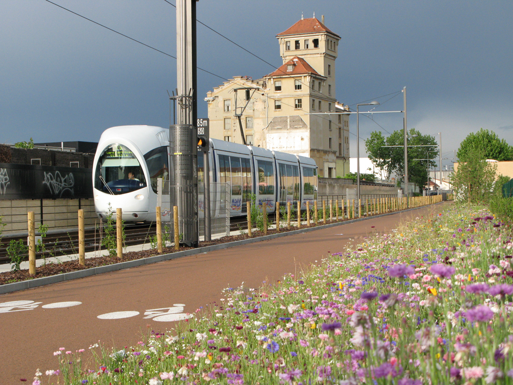 LEA a été une opportunité pour créer une nouvelle composition urbaine et paysagère ainsi qu’une image renouvelée de la relation « centre et zones périurbaines ». L’emprise ferroviaire récupérée va servir à deux usages : un site propre pour le tramway et une piste cyclable bi-directionnelle en parallèle.