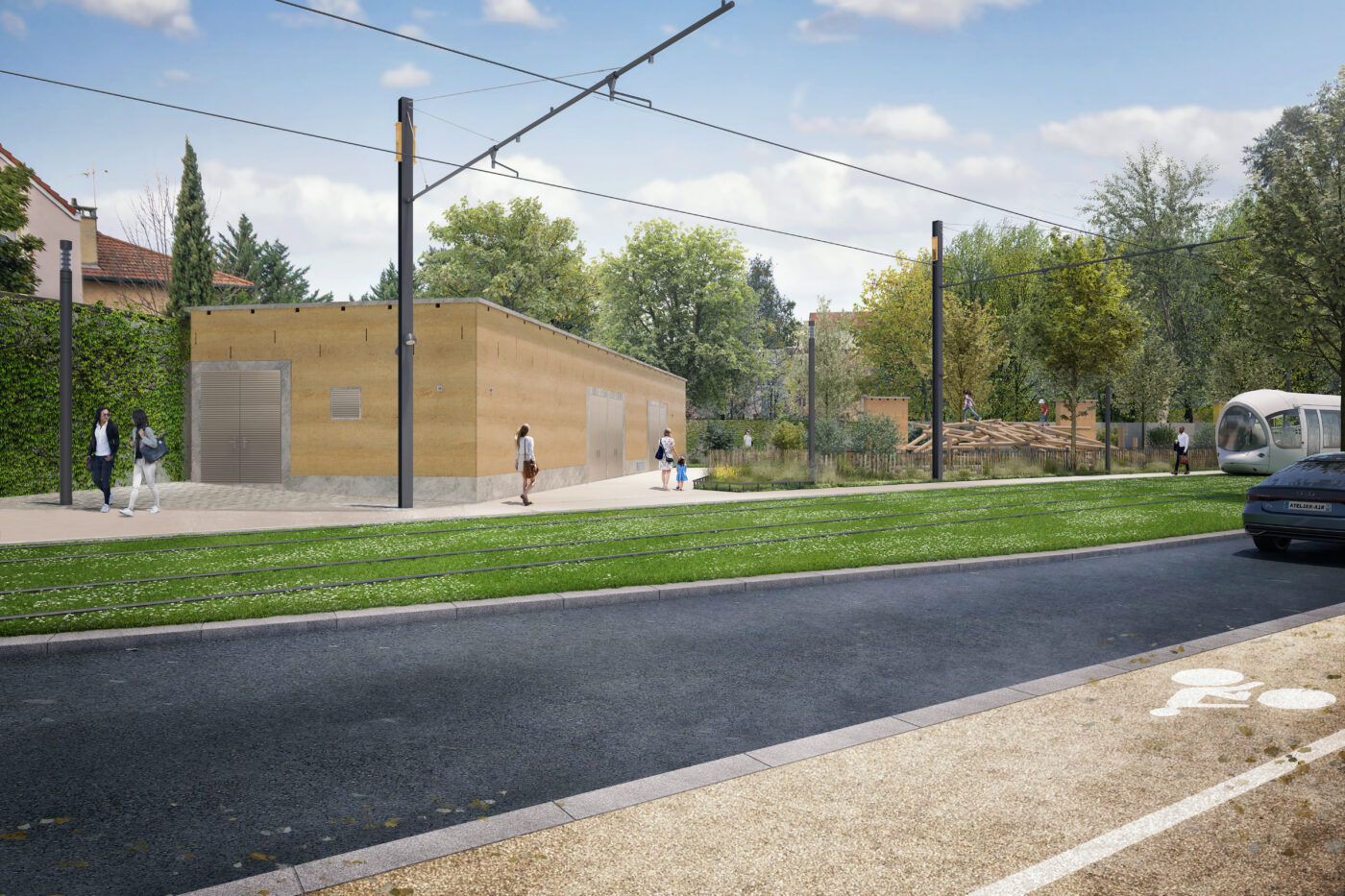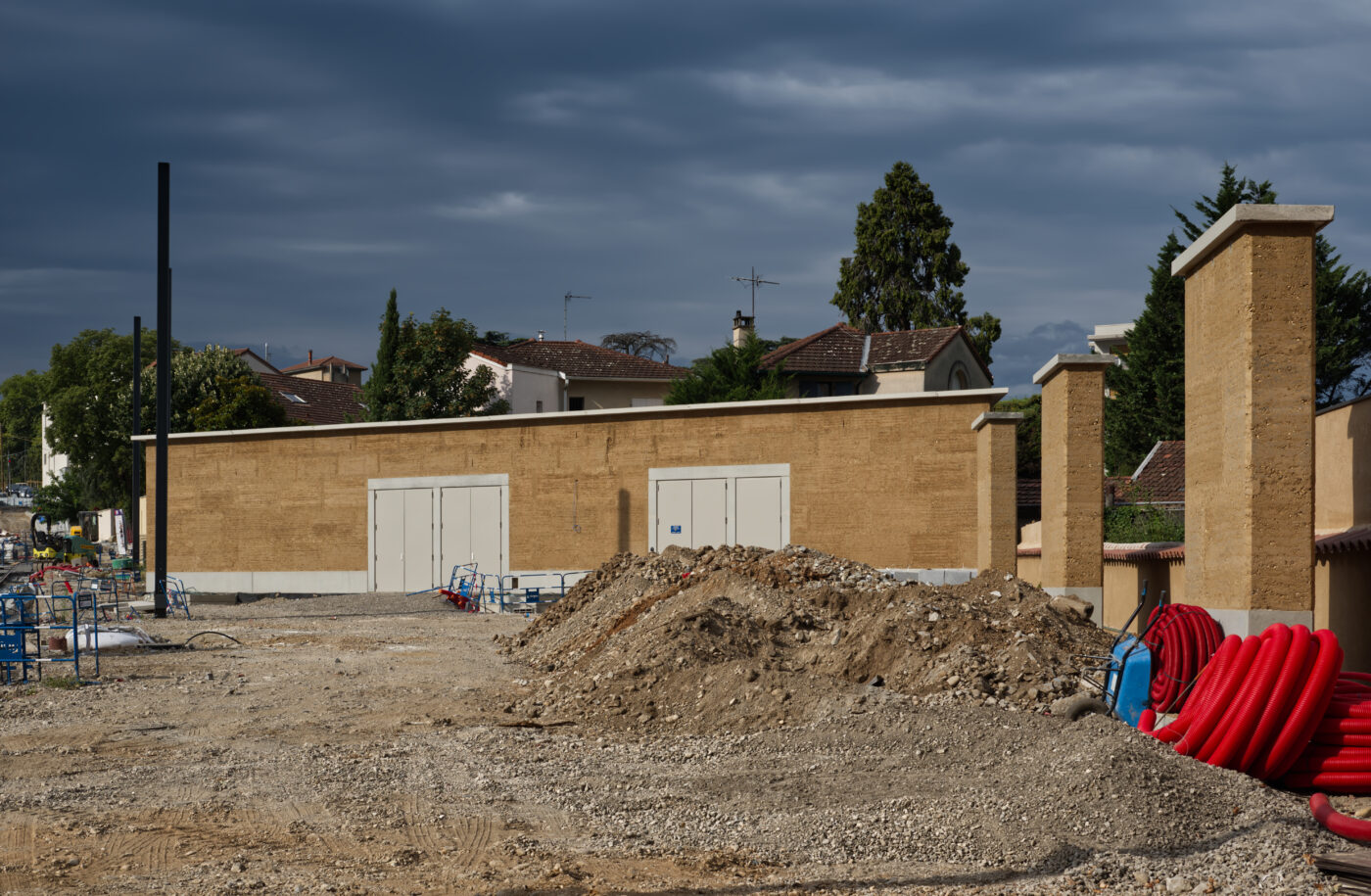 Sur le projet du T6N, trois des quatre sous-stations (Kimmerling, la Fontaine et celle des Poulettes) s’inscrivent dans la recherche d’une architecture novatrice utilisant des matériaux et techniques structurelles locales en les réinterprétant sur des bâtiments prosaïques. La technique de la construction en Pisé est donc parfaitement en lié avec les ambitions du T6N.