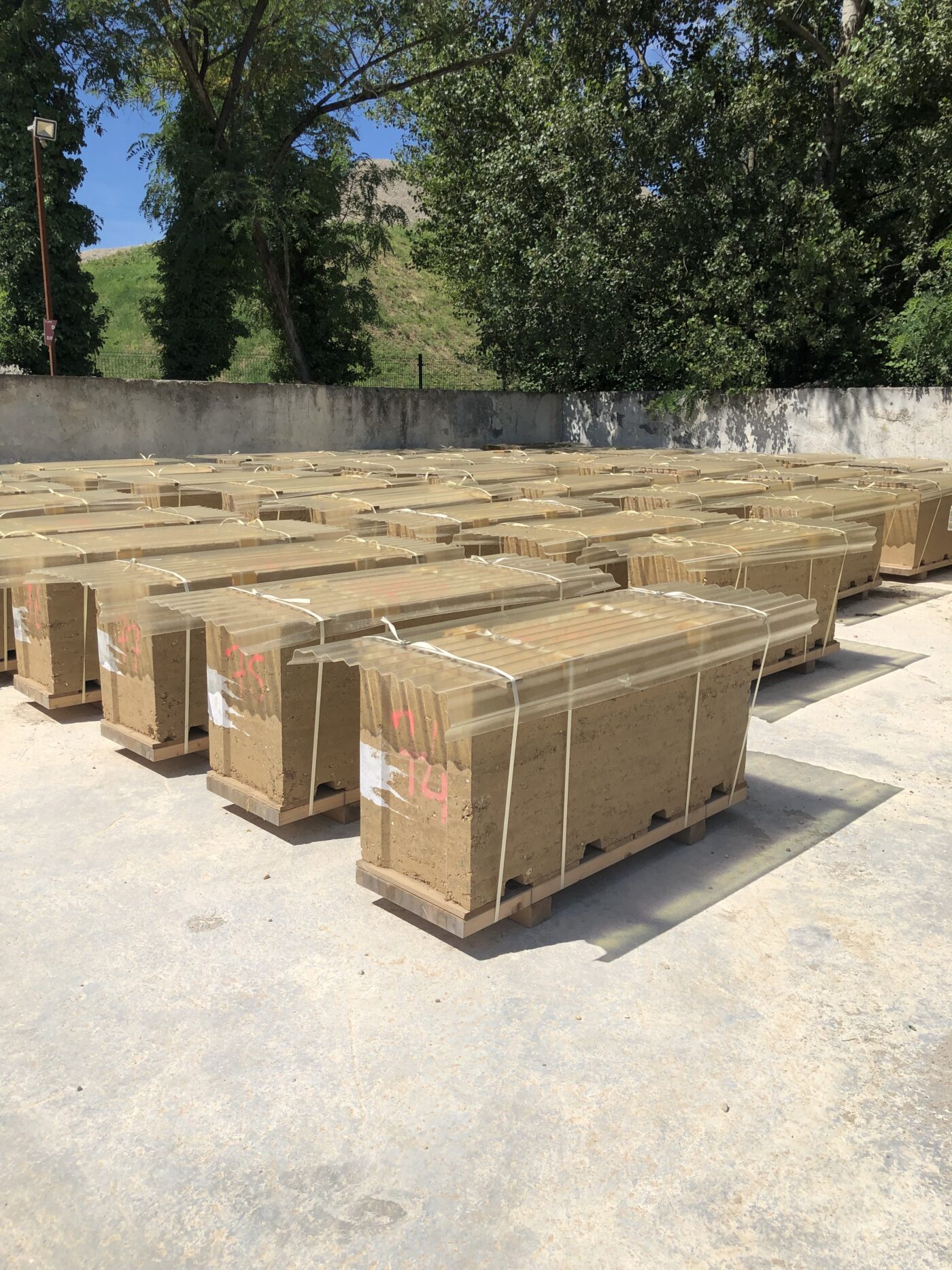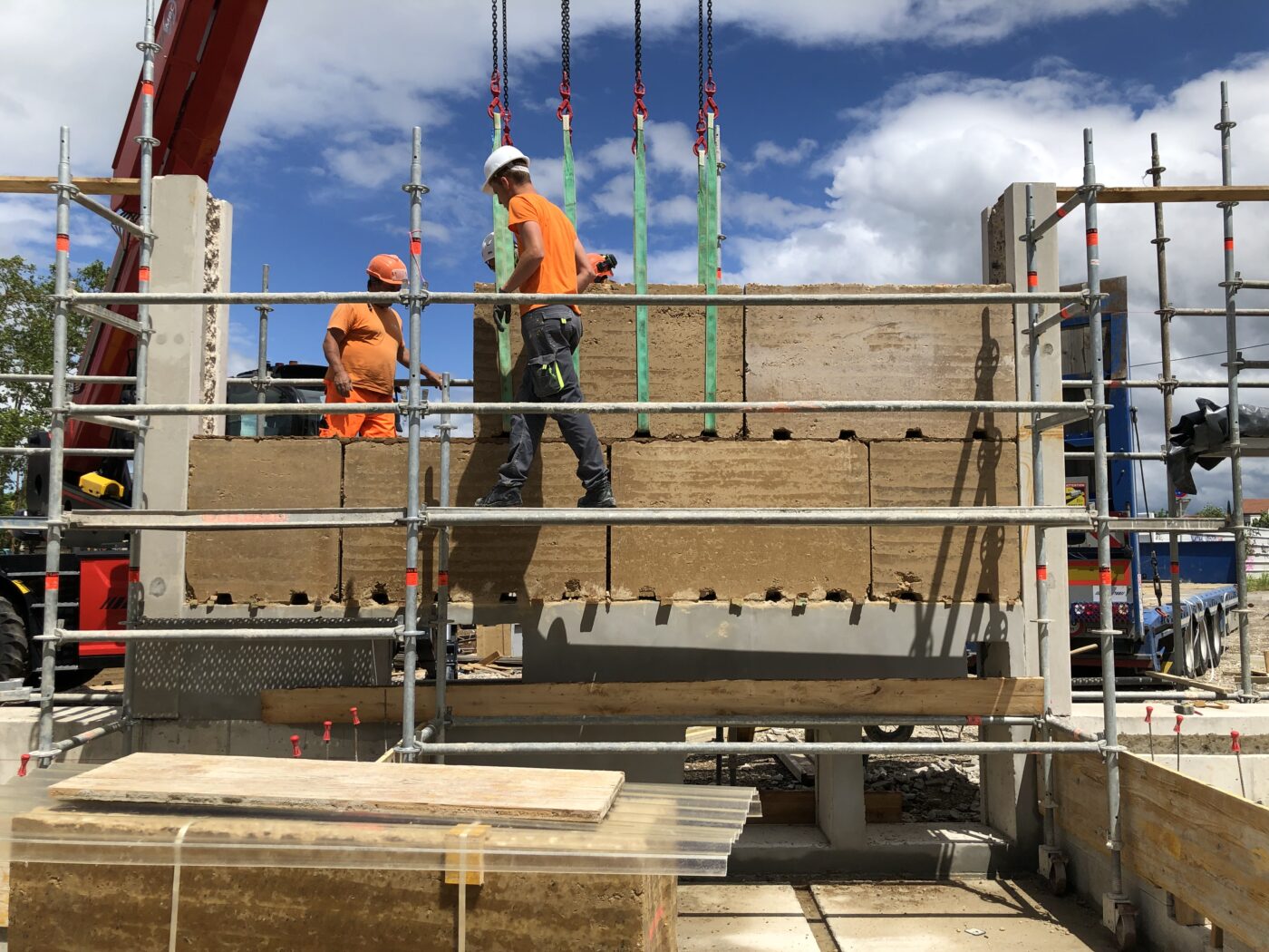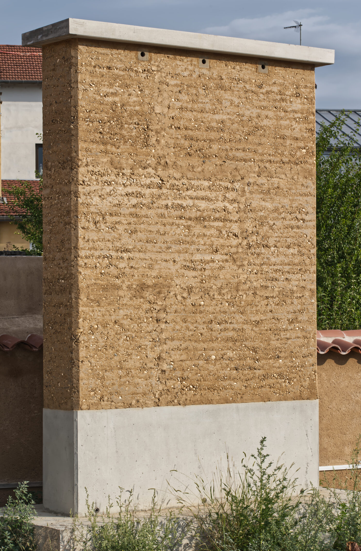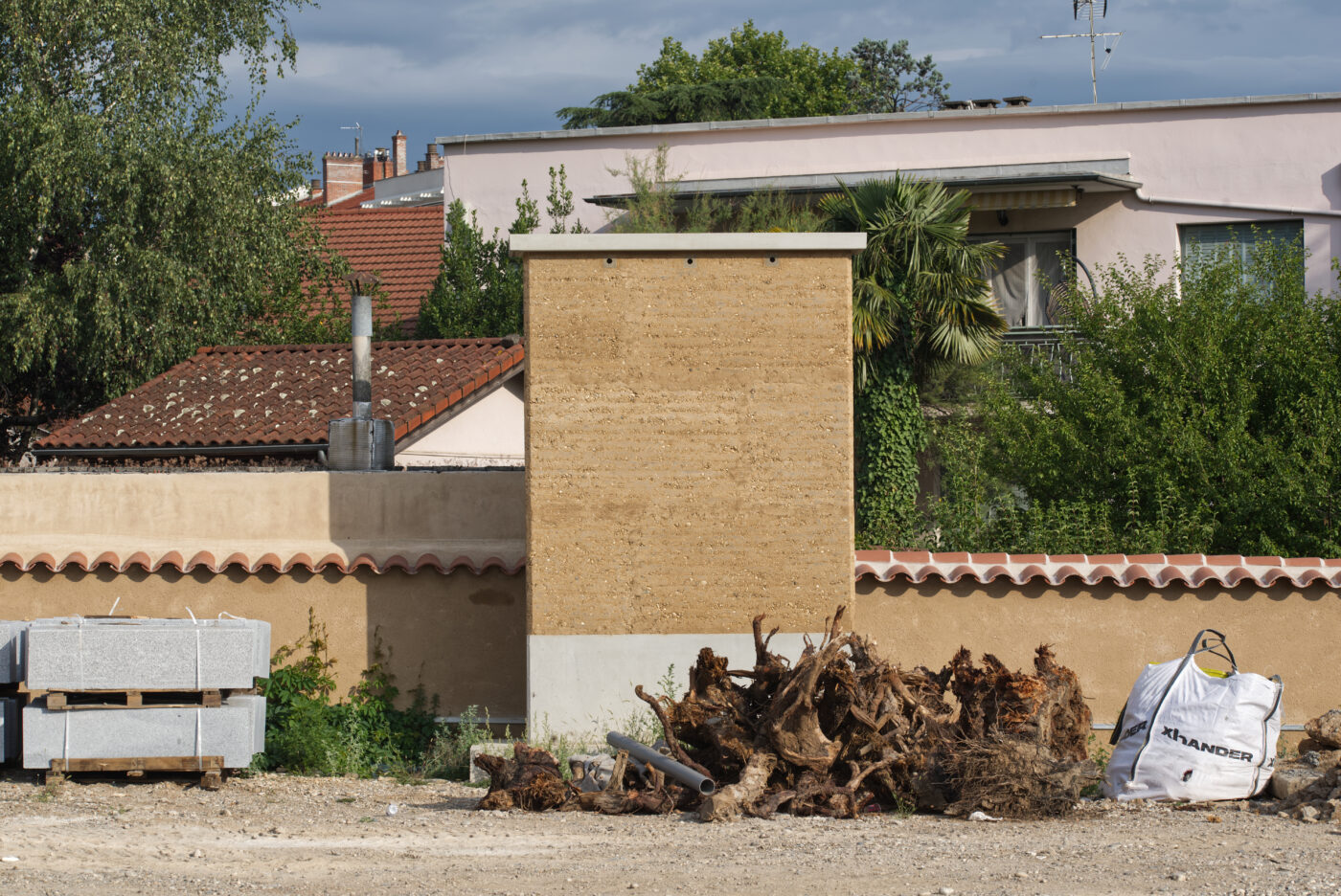 La solution retenue est le pisé préfabriqué pour ces bâtiments. Ce choix est la résultante de plusieurs axes de réflexions : le fait d’utiliser la terre de carrière favorise cette technique.