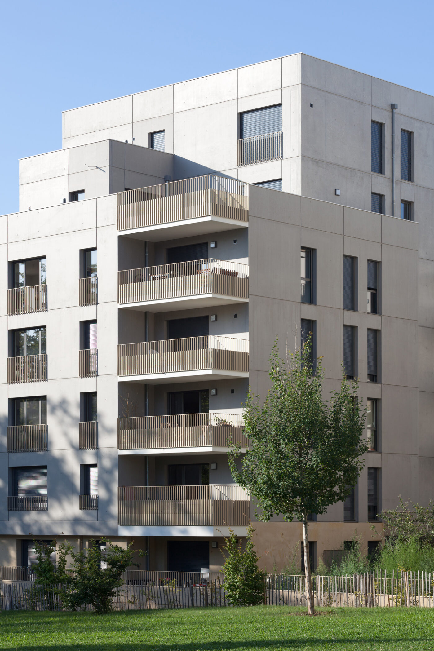 Soleil et vues pour tous, par le parti pris du plan masse, par le positionnement et l’orientation des logements, par les balcons qui ouvrent et prolongent les logements vers l’extérieur.