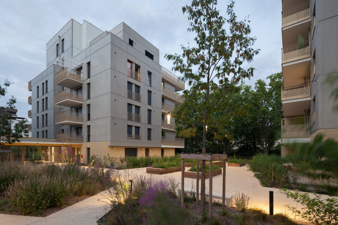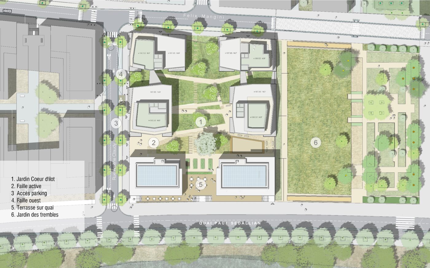 C’est satisfaire le désir et le droit, ici impératif, au soleil et à la vue pour chaque logement. C’est concevoir des espaces à vivre qui rendent possible le bien-être de chacun, à chaque âge, dans un environnement paysagé, apaisé, animé, attentionné.