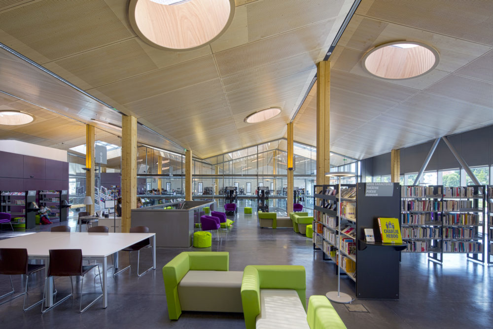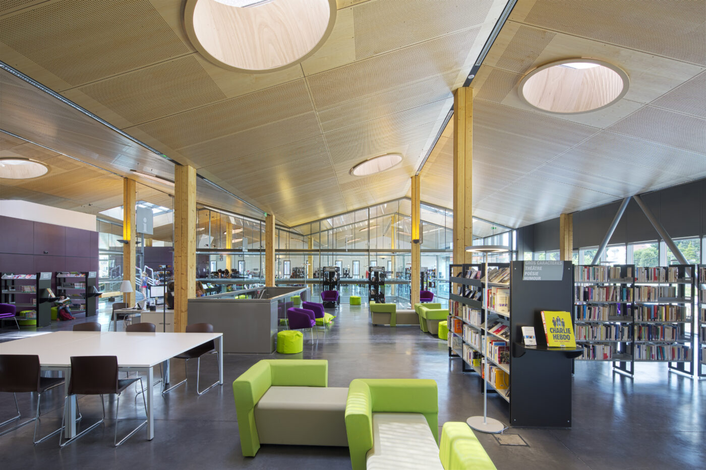 - La médiathèque bénéficie également de la lumière du Nord, généreuse et indirecte, idéale pour la consultation des ouvrages.