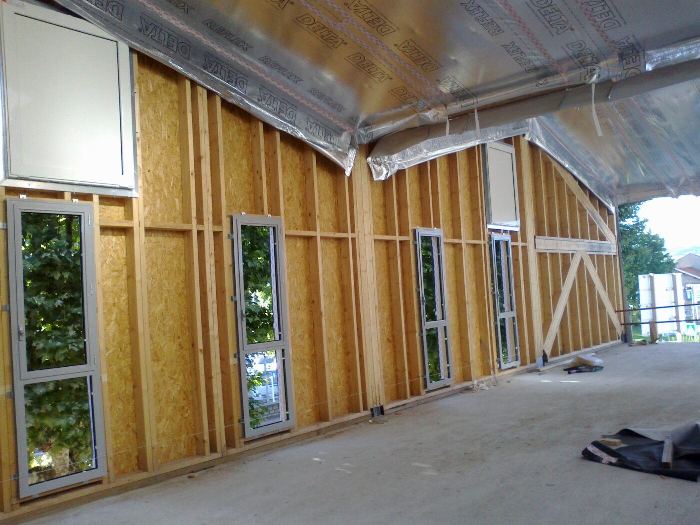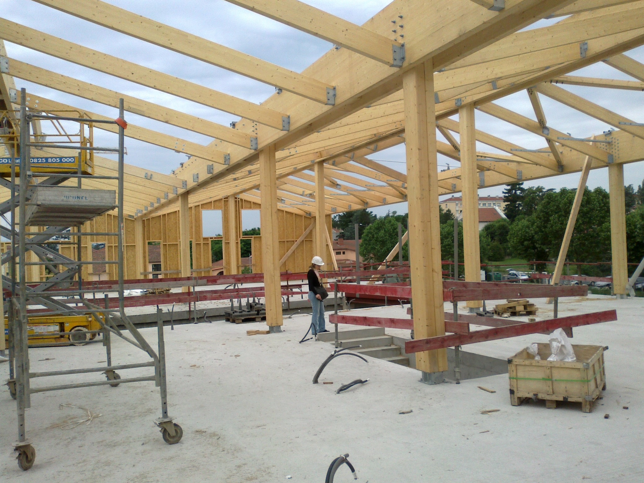- Une seconde couche dans la hauteur du 1er Etage, réalisée en charpente bois.