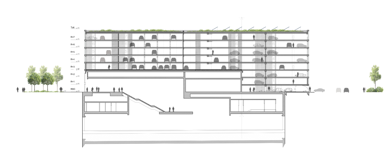 Le programme de ce parc relais est inscrit au cœur d’un nouveau quartier, le vallon des hôpitaux, dont le futur pôle modal est une pièce majeure.