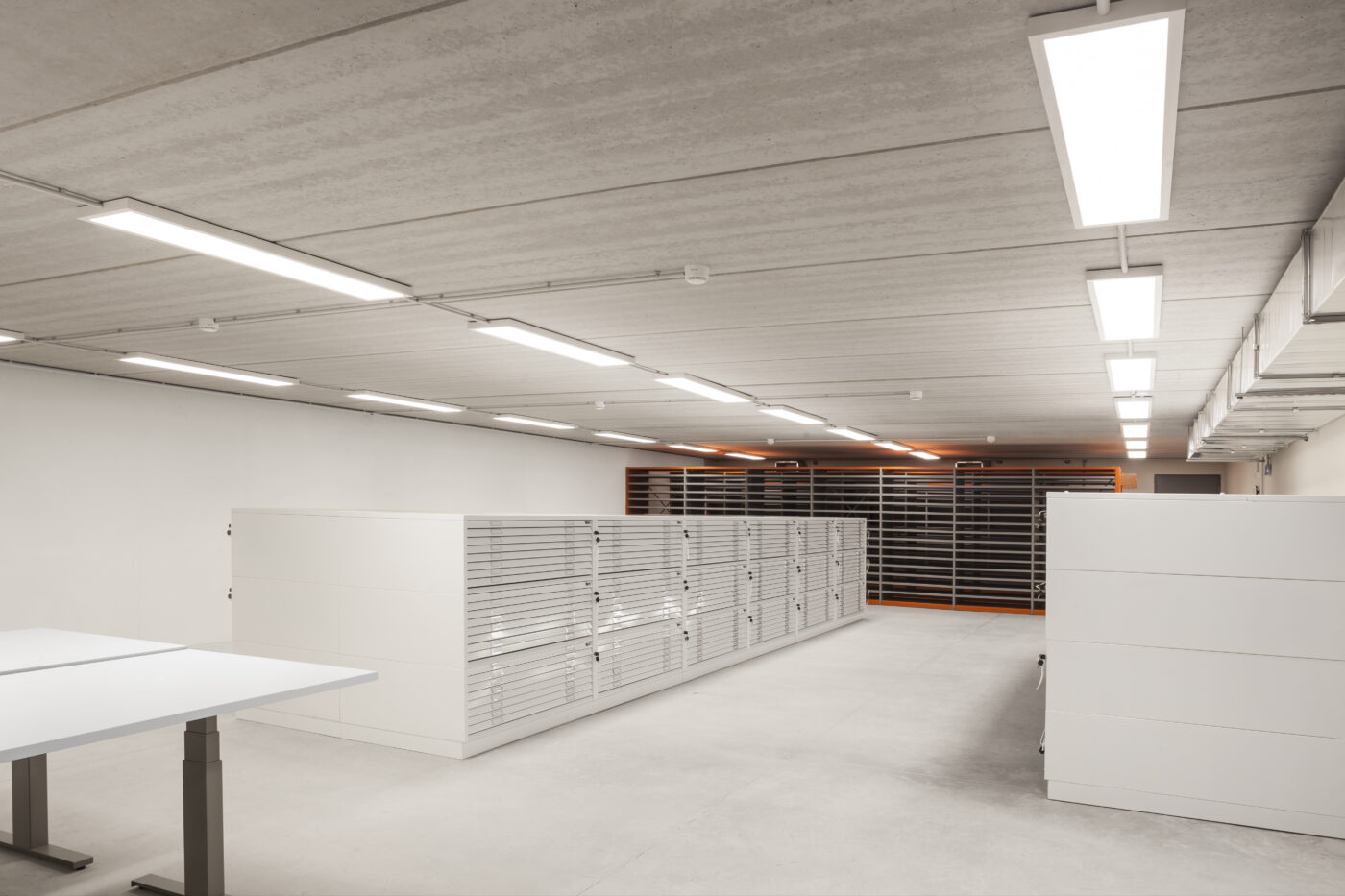 Le bâtiment accueil : le Service des Archives Départementales avec 40 km de linéaires d’archives, le Service départemental d’Archéologie, les réserves des musées départementaux, un espace mémoriel de Vaucluse, le Centre de Conservation et d’Études (CCE) de l’État, des réserves et espaces de travail pour le Service des Archives du Grand Avignon.