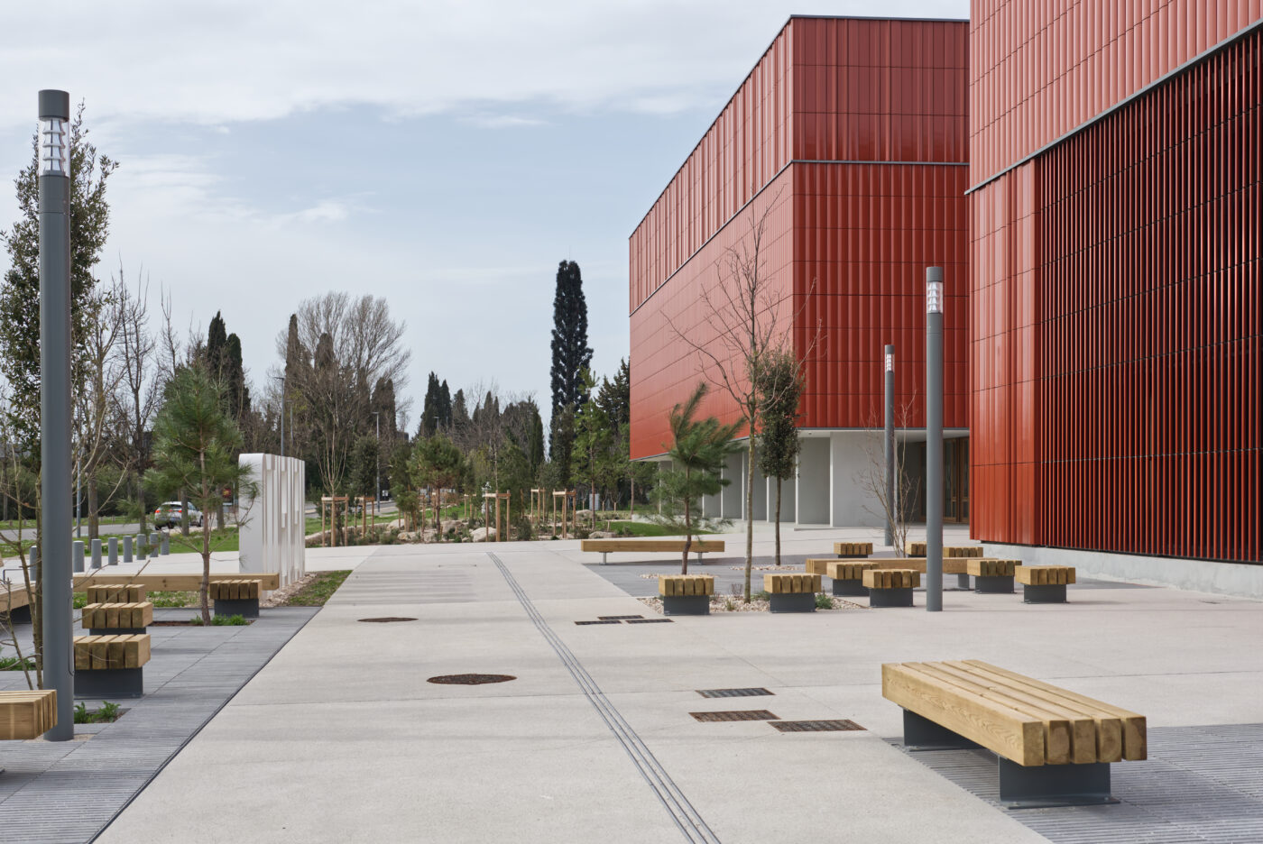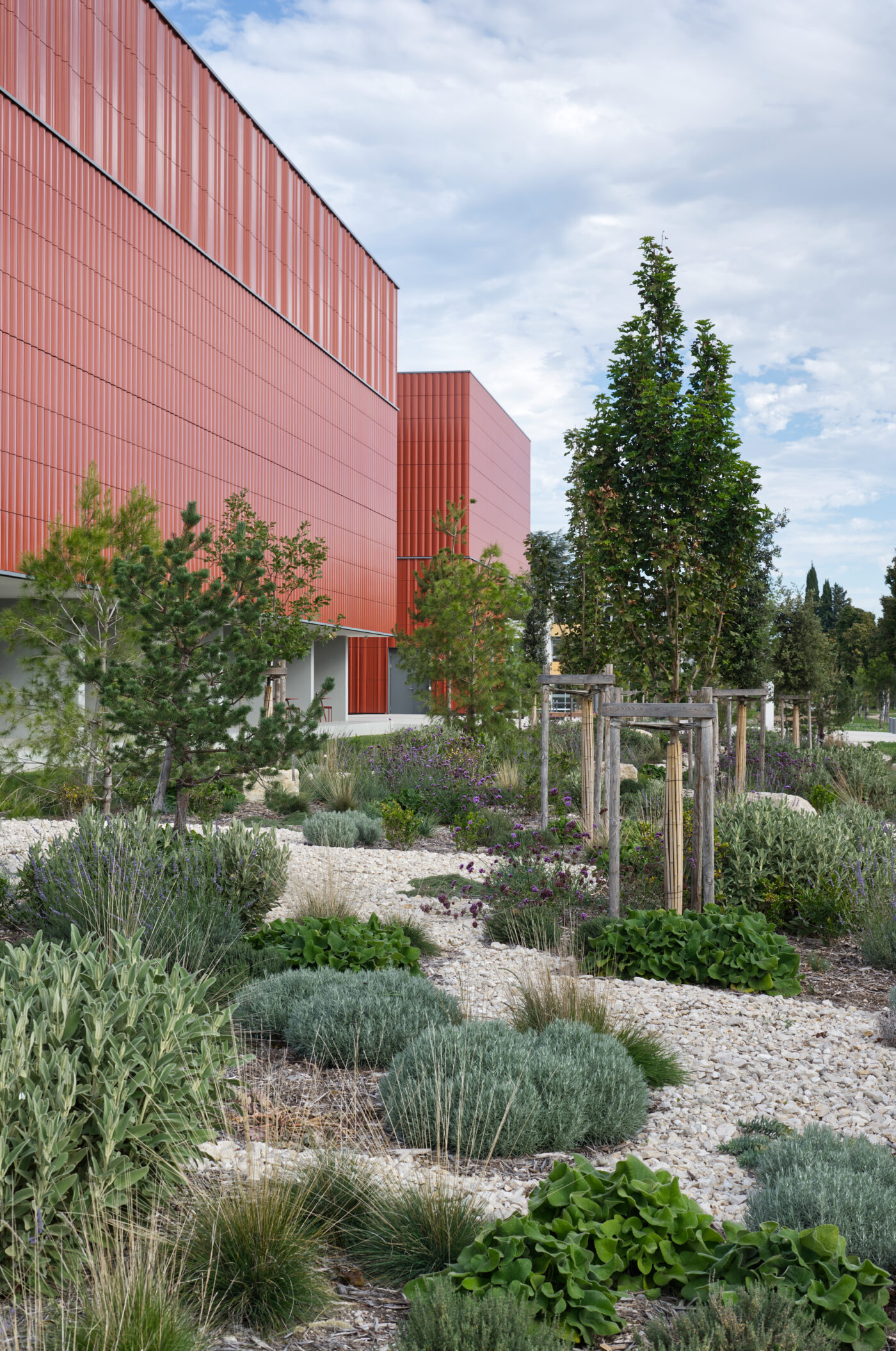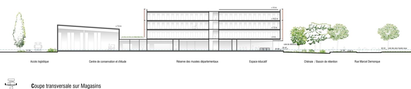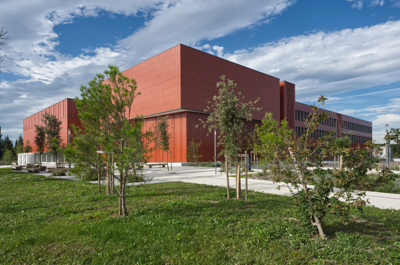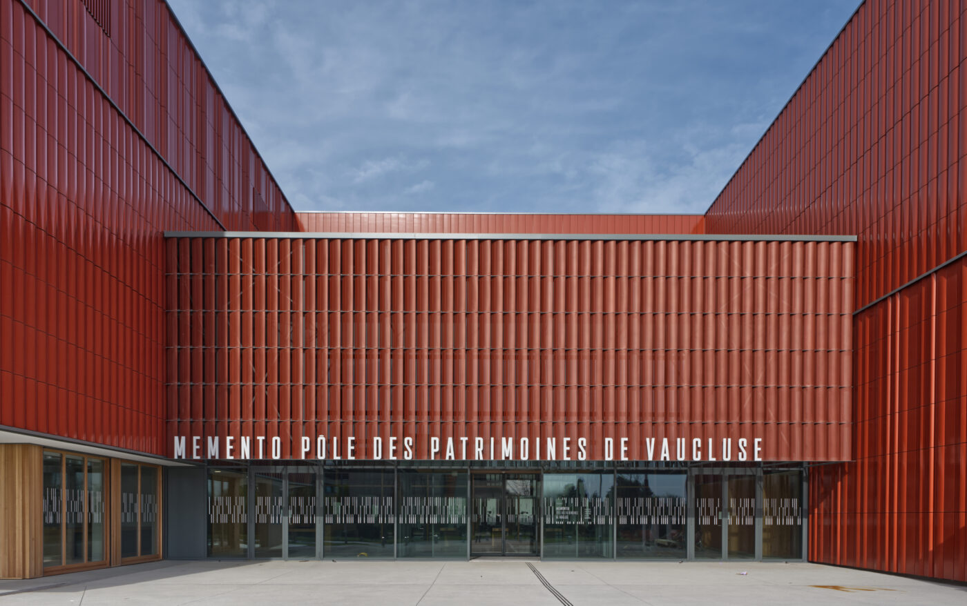 Au cœur du technopôle d’Avignon, l’architecture de ce nouvel équipement est à la fois sobre et captive pour marquer sa vocation patrimoniale et culturelle. Elle se caractérise par une architecture expressive : un bâtiment sans fenêtres mais identifié par une peau de terre cuite, colorée et contemporaine, une attention au paysage, et un rapport privilégié à la rue Demonque. C’est en effet sur cette rue que le bâtiment s’adresse, implanté en retrait pour générer une large frange arborée.