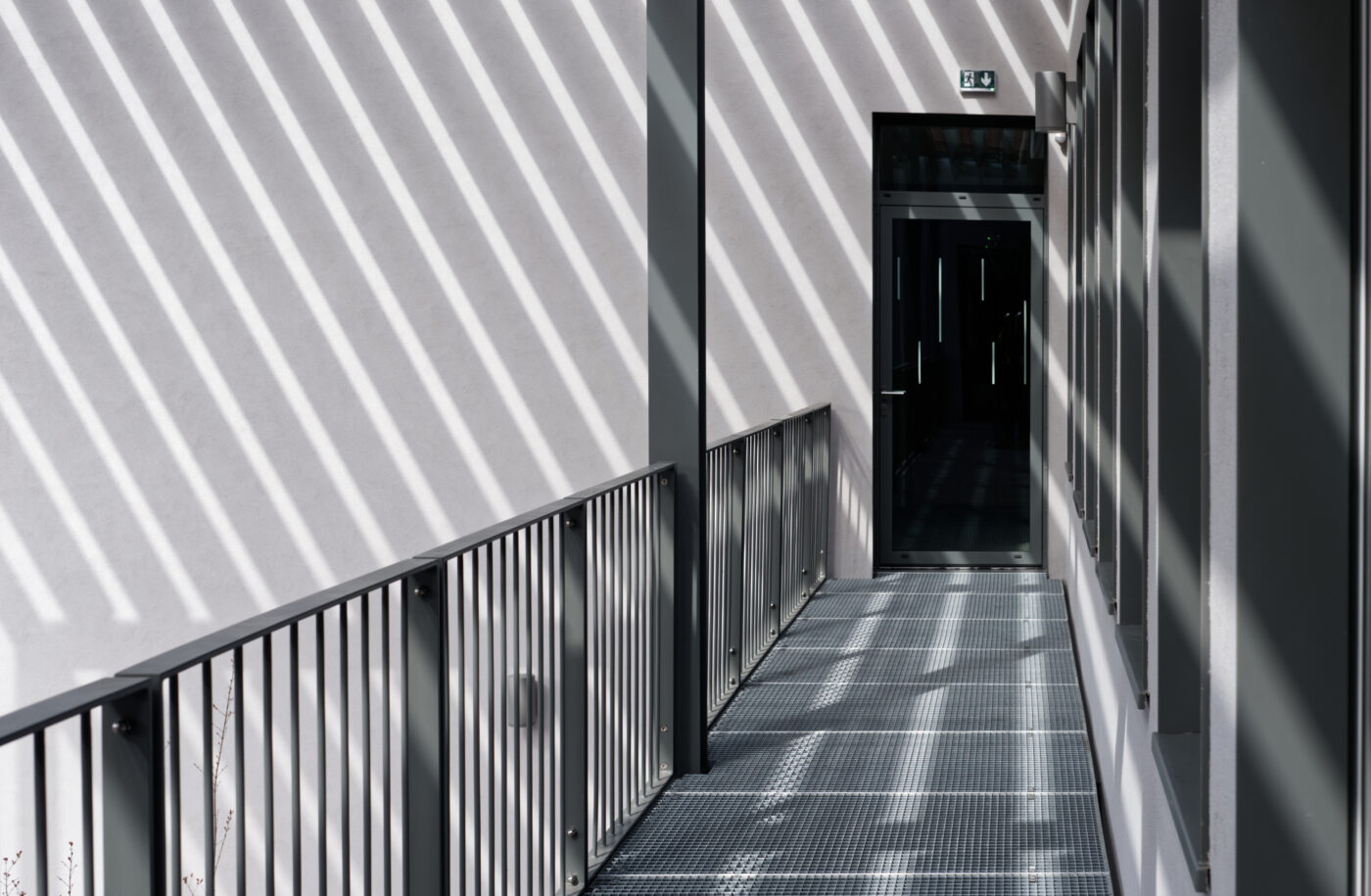 Le confort de tous, personnel, visiteurs repose sur quelques règles simples de protection au vent et au soleil. Ainsi l’entrée située dans le creux de la faille à l’est, la cour logistique abritée à l’ouest, le verger exposé au sud des volumes bâtis. De même les bureaux ont essentiellement une orientation nord ou sud pour mieux se protéger du soleil.