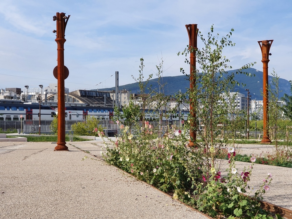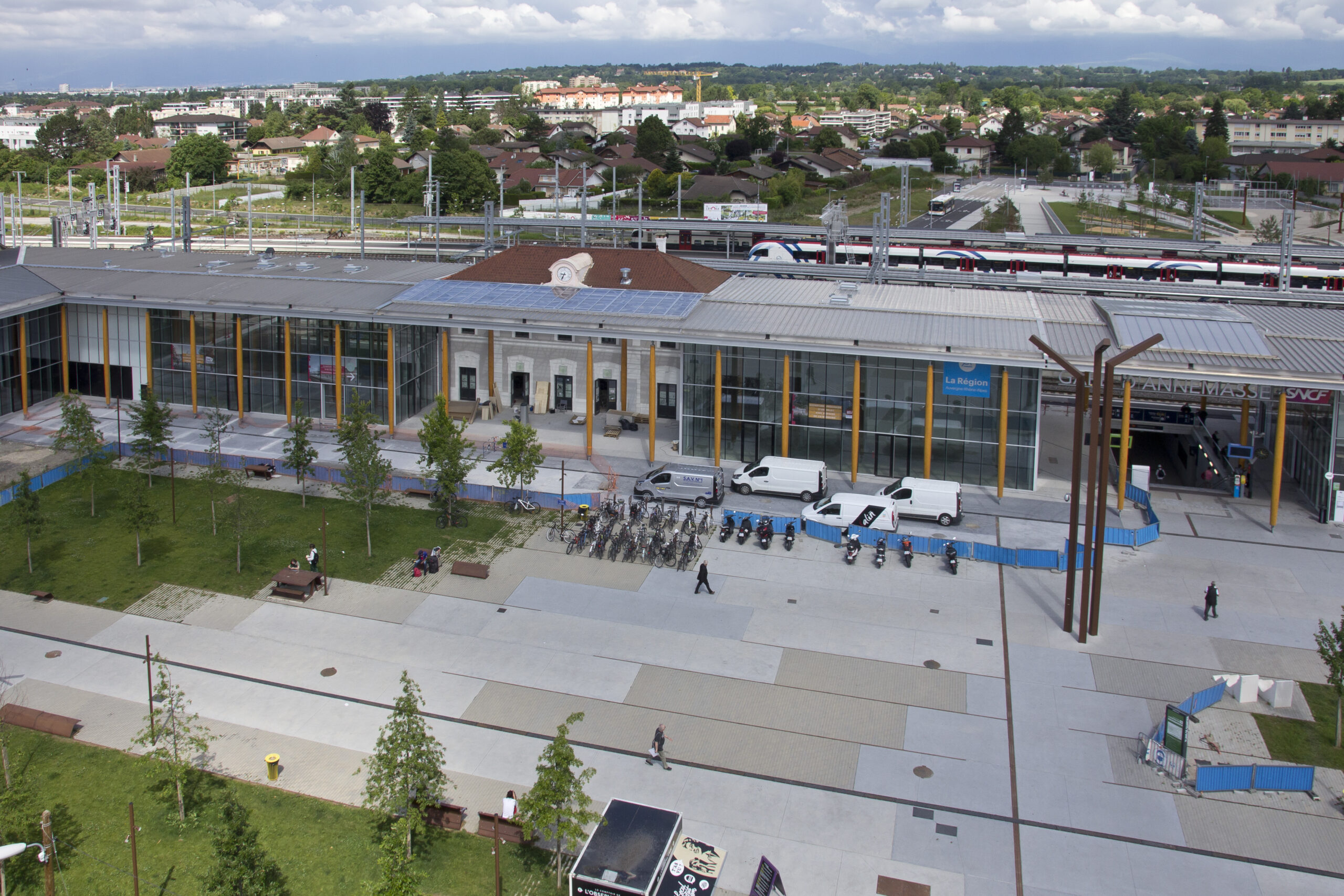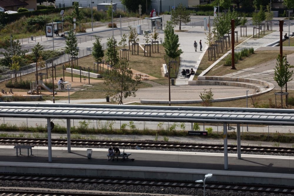 A une échelle plus large, cette nouvelle gare ouverte en décembre 2019 est une porte d’agglomération, une offre parmi d’autres pour entrer dans la métropole franco-valdo-genevoise. Et cette porte est requalifiée pour s’inscrire dans un réseau de polarités multiples (identité métropolitaine) et devenir centre (identité locale).