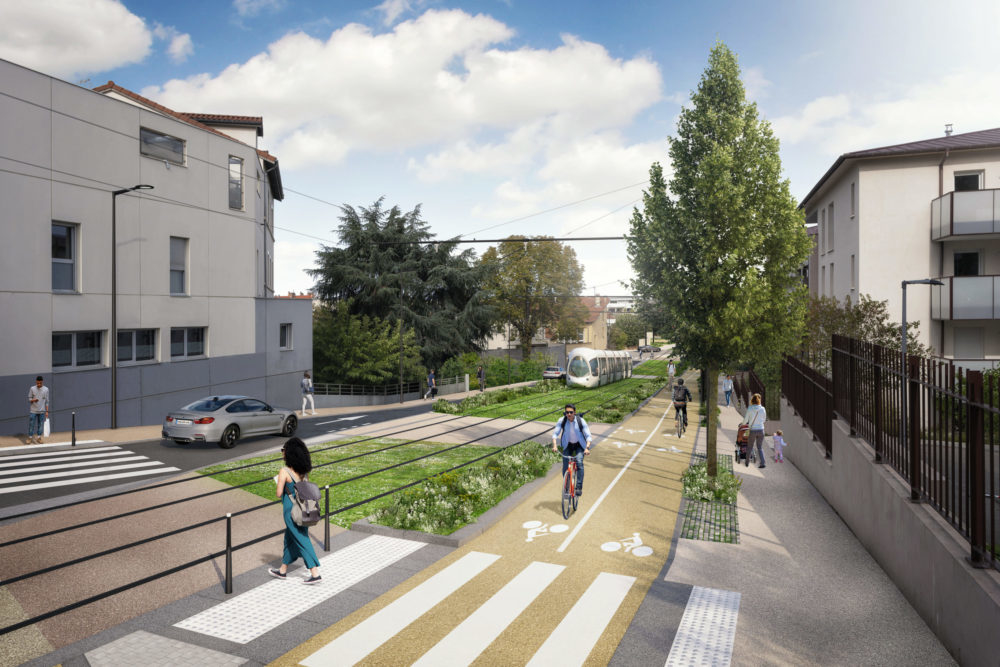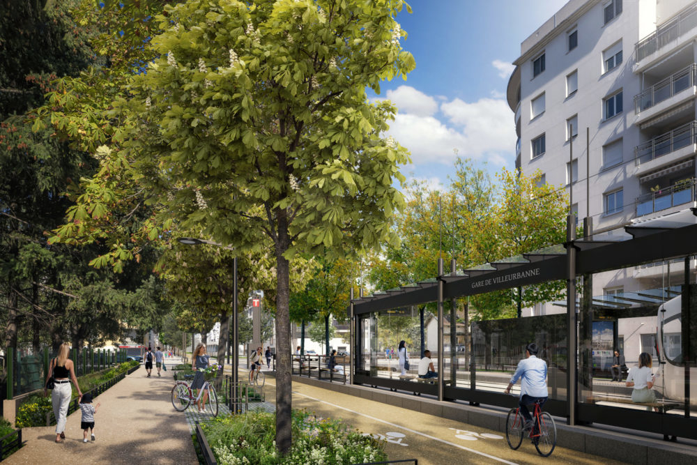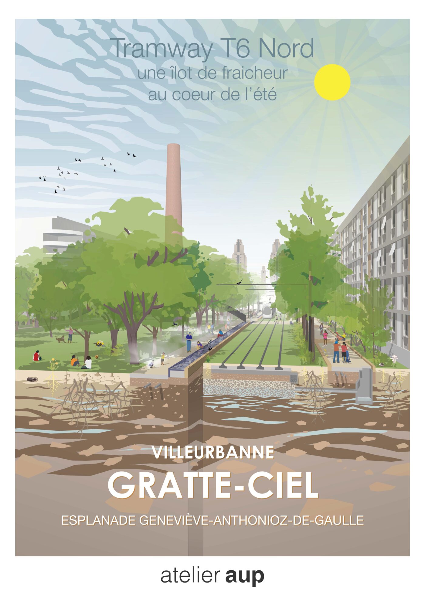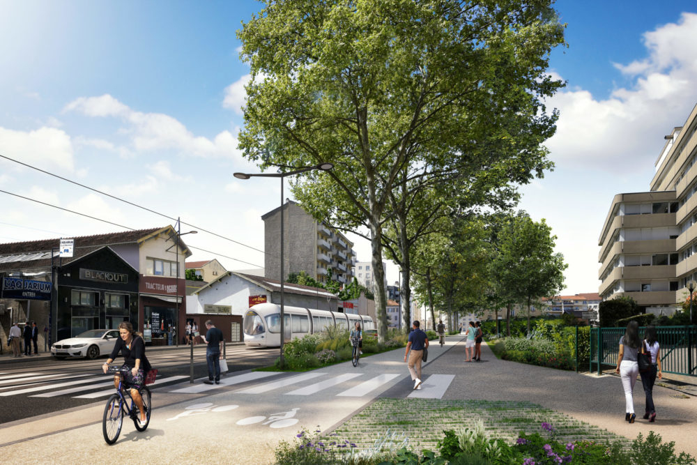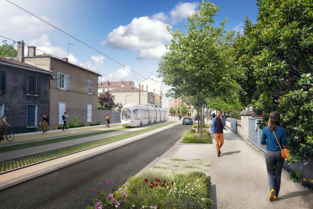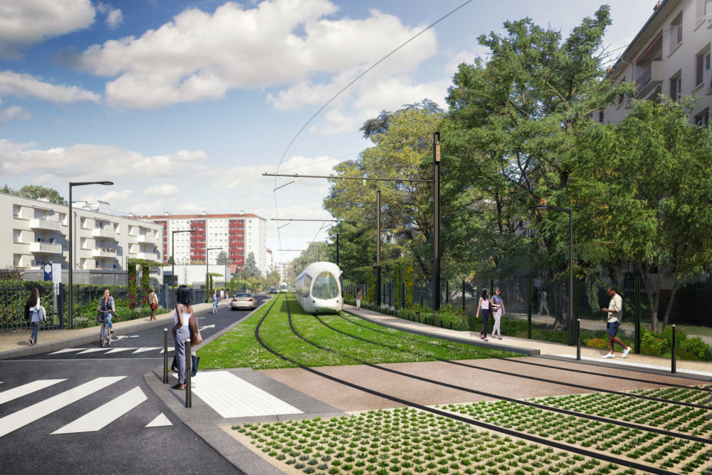 L’extension de la ligne T6 s’étire sur 3 communes, du secteur des hôpitaux Est au campus de la Doua, en passant par les grandes centralités et projets urbains de Villeurbanne : la place Grand Clément et ZAC Grand Clément, le secteur historique et patrimonial des Gratte-Ciel et la ZAC associée. Le projet s’étire sur 5 km et dessert 10 stations avec un tramway toutes les 7 min pour 55 000 voyages par jours en 2030. Le tissu urbain dense traversé, peu maillé d’axes structurants nord sud accueil le tramway avec un partage des modes volontariste, alternant 13 % d’aires piétonnes, 5% de voies vertes et 10% de zones de rencontres. Sur le reste de l’itinéraires des pistes cyclables larges et confortables et sécurisées accompagnent la ligne.