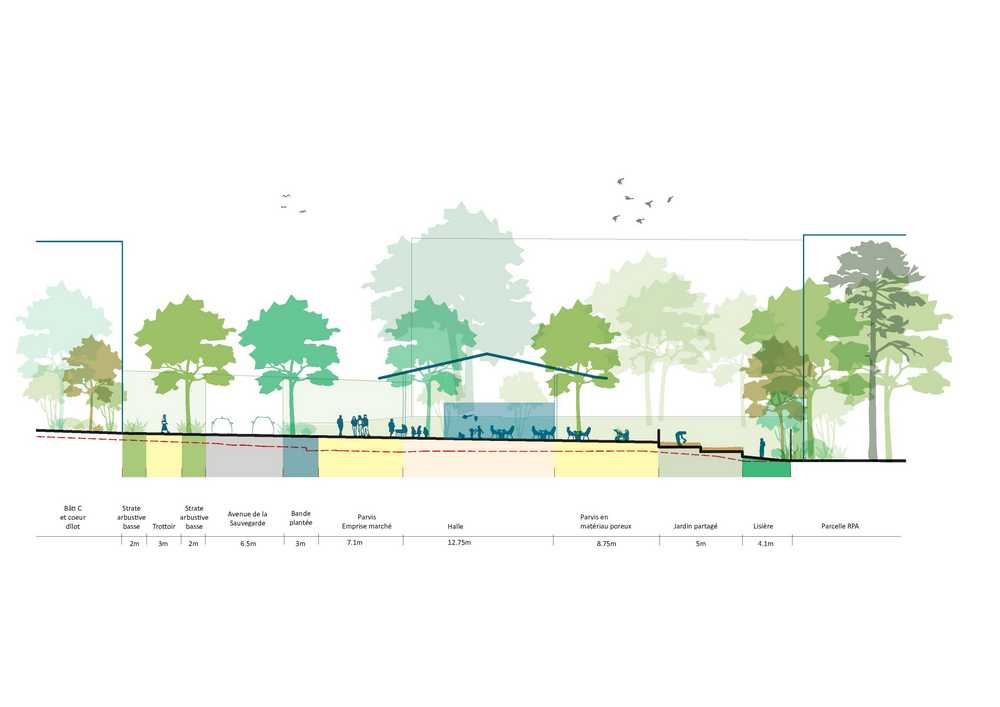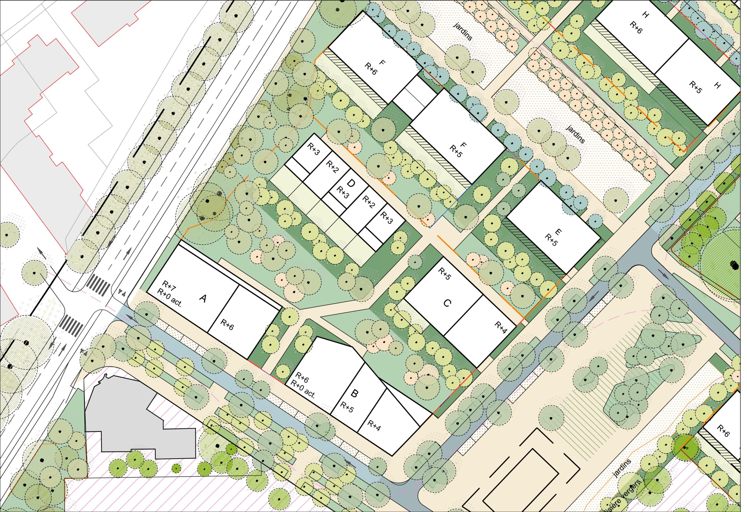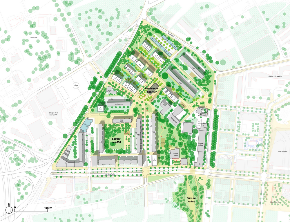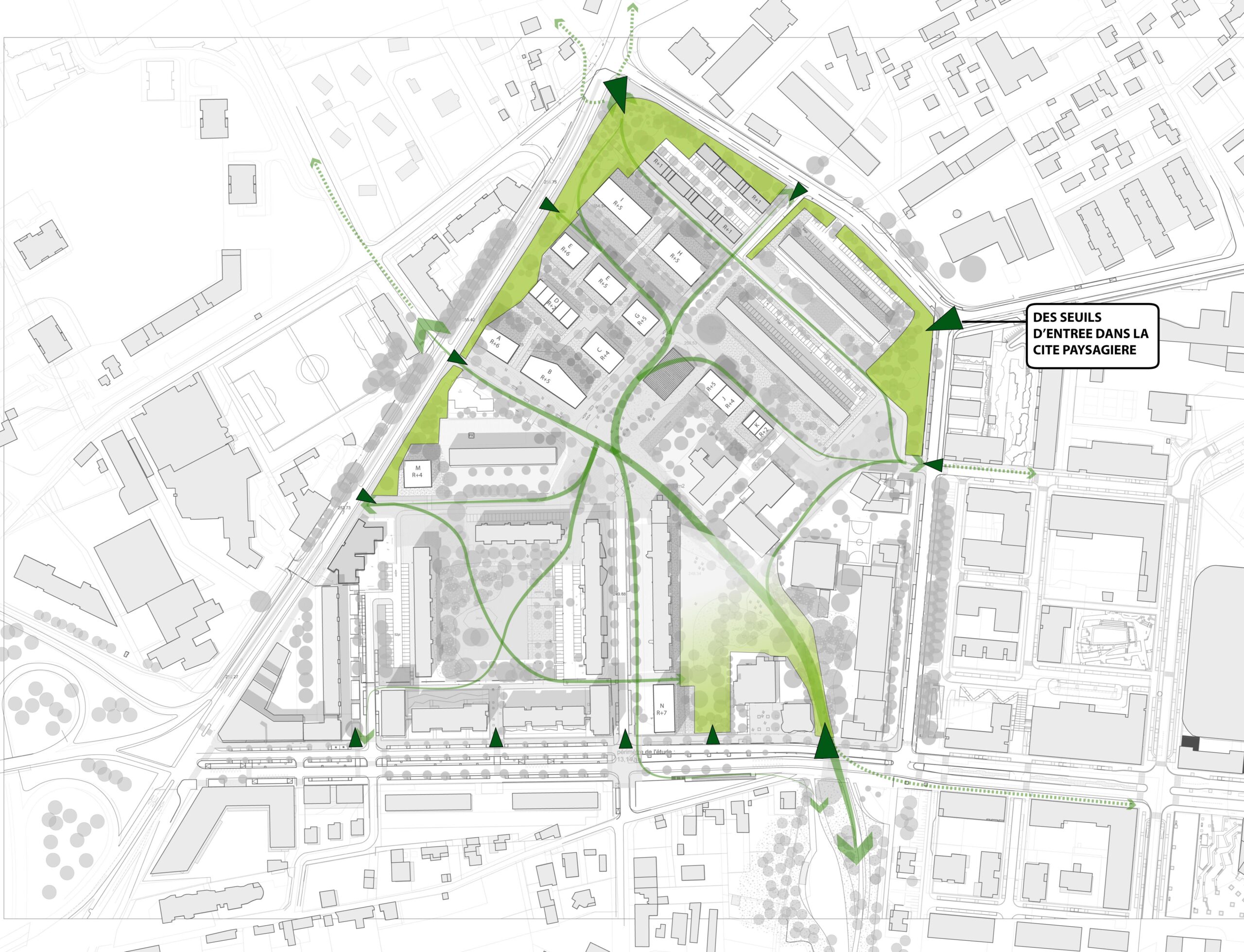 – Une cité paysagère, qui inscrit le cadre arboré existant comme socle de composition des futurs ilots.