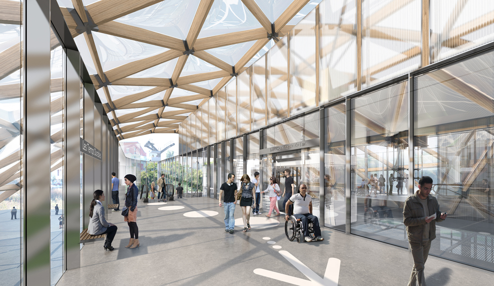 Un fil vert guide la conception, le « fonctionnel » suit le «structurel ». La gestion des flux entre le parvis, le quai et la cabine, l’orientation des voyageurs, l’implantation de la signalétique, les dispositifs de secours sont l’ensemble des contraintes qui orientent la conception de la station au sein du volume construit. Chaque site d’implantation sert de guide pour l’écriture architecturale de la station. Ces éléments permettent d’inscrire la station dans son environnement immédiat.
