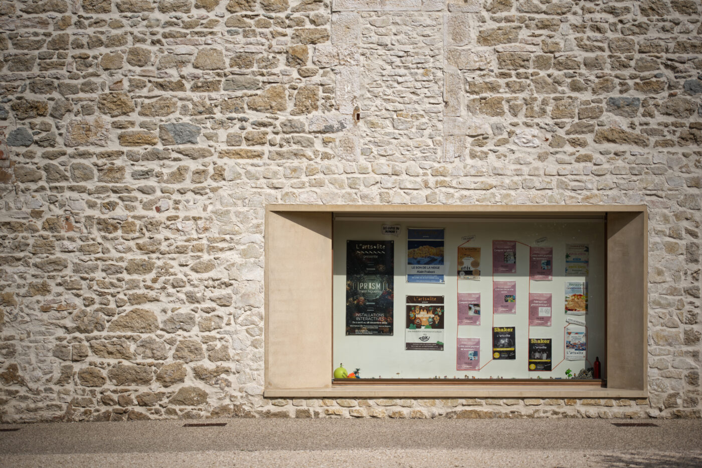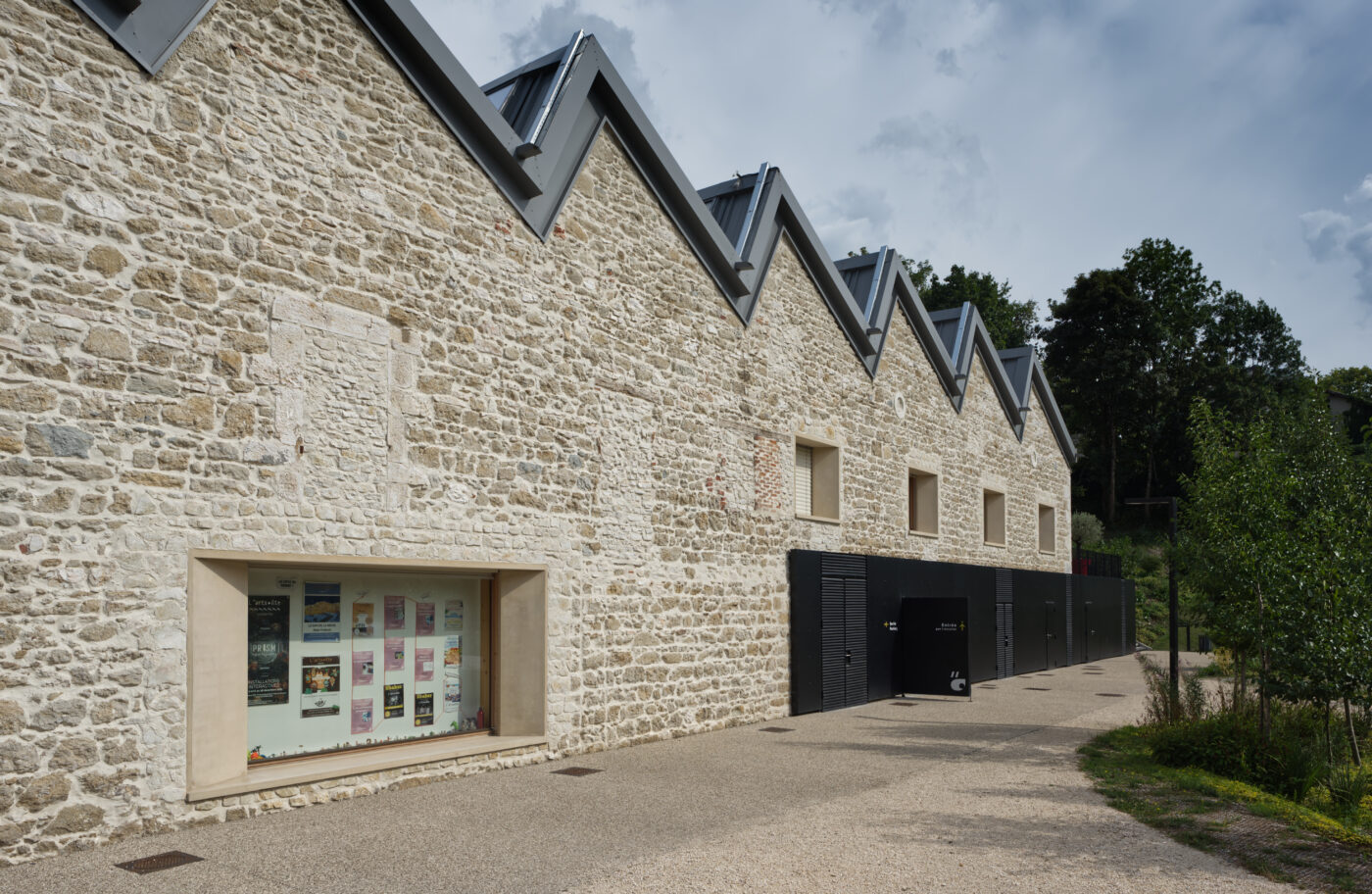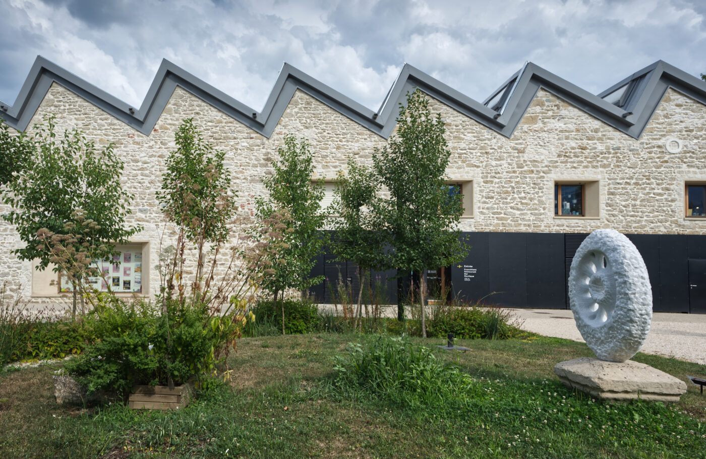 Le chantier a été réalisé exclusivement avec des entreprises et un savoir local. C’était une exigence des maitres d’ouvrage. Les pierres ont été réemployées, les terres réutilisées pour aménager un amphithéâtre extérieur en terre. Les espaces intérieurs sont dépouillés. Ils s’inscrivent dans une logique d’appropriation et d’adaptabilité. La halle d’exposition est brute, réversible, mais apte à accueillir des œuvres de tout type.