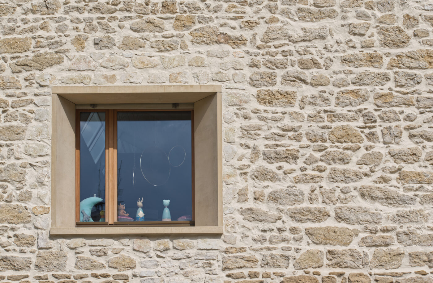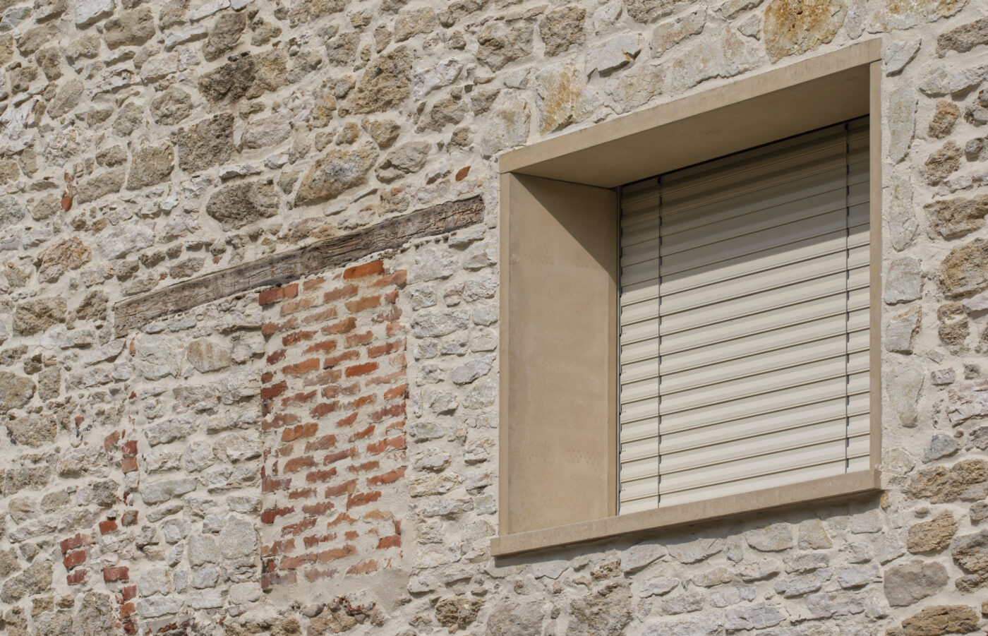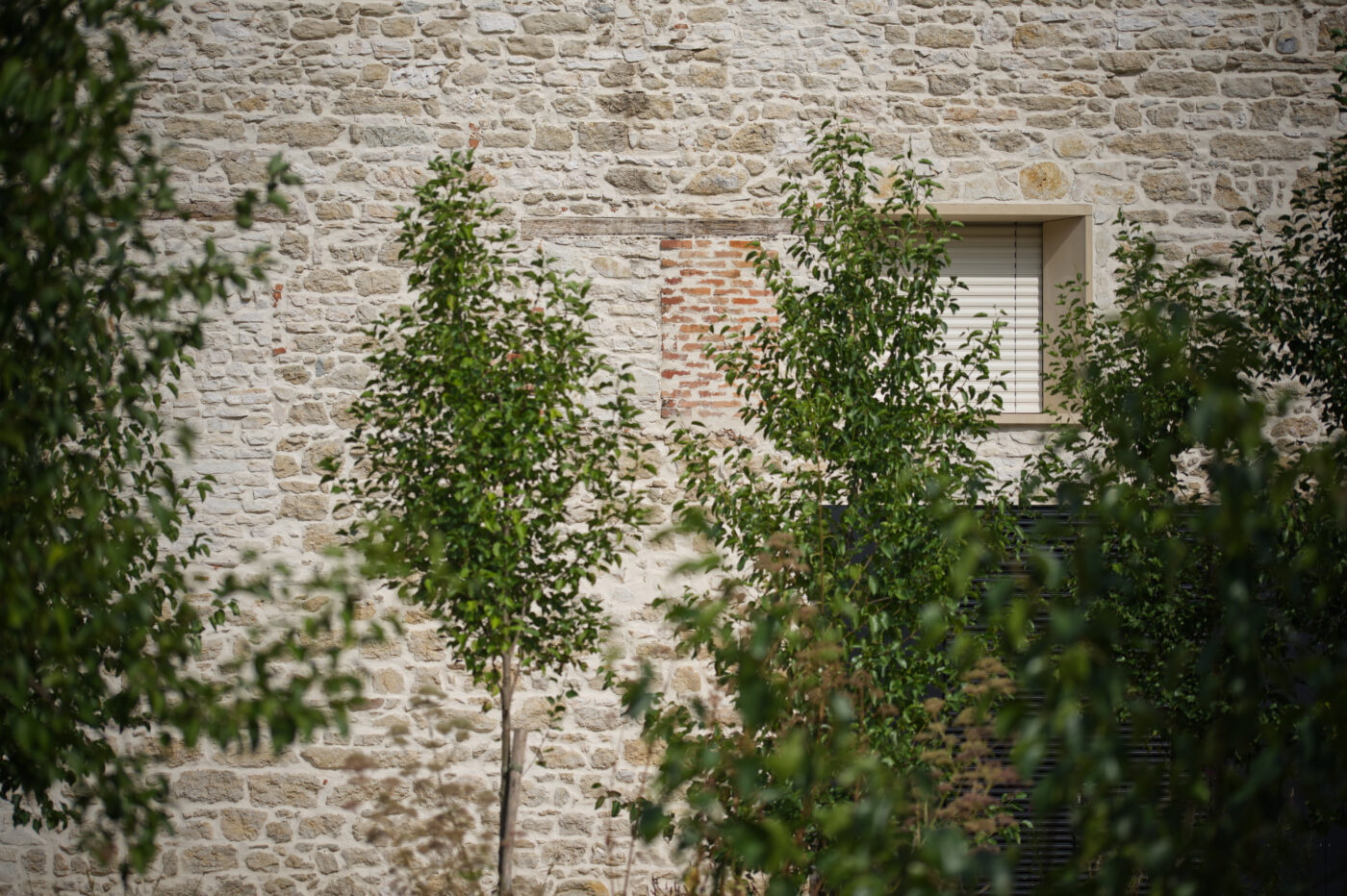 Le chantier a été réalisé exclusivement avec des entreprises et un savoir local. C’était une exigence des maitres d’ouvrage. Les pierres ont été réemployées, les terres réutilisées pour aménager un amphithéâtre extérieur en terre. Les espaces intérieurs sont dépouillés. Ils s’inscrivent dans une logique d’appropriation et d’adaptabilité. La halle d’exposition est brute, réversible, mais apte à accueillir des œuvres de tout type.