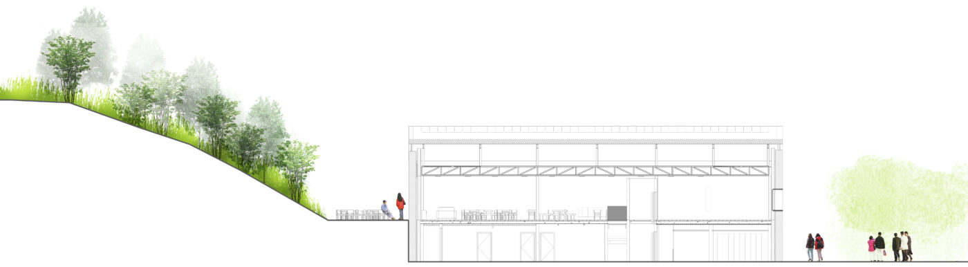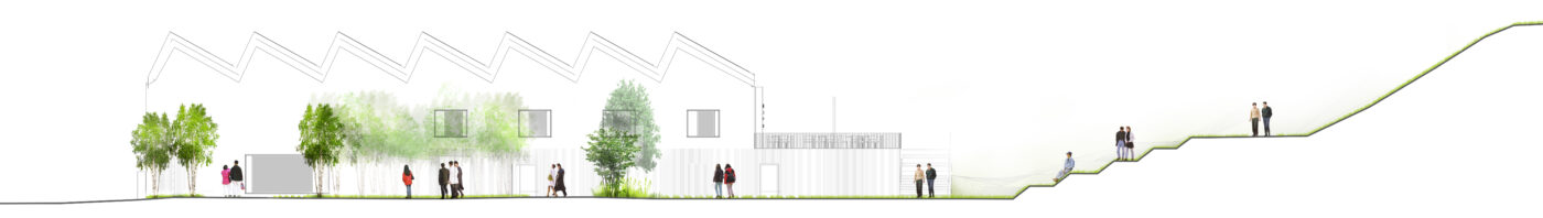 Le site a été réhabilité, dessiné, construit autour d’une équipe élargie dans le cadre d’une gouvernance partagée. Des ateliers de co-conception ont permis de mettre au point la programmation, le fonctionnement, les choix constructifs et architecturaux.