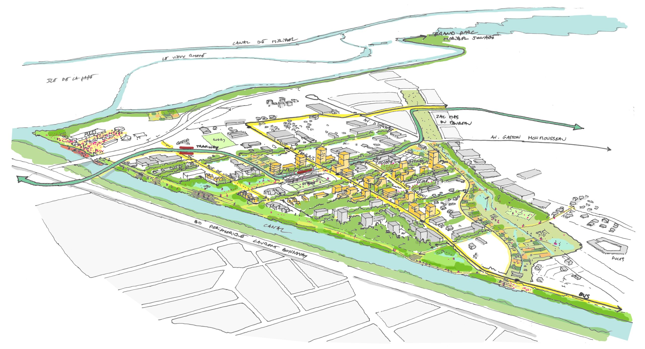 Le projet accorde une place centrale aux espaces publics et à la nature en ville. Sur les 30 hectares de la ZAC, 12 hectares seront consacrés aux espaces publics, dont un parc central de plus de 1,5 hectare situé sur l’ancien site des stades des Peupliers. Une attention particulière est portée à la trame verte, aux déplacements doux, à la gestion de l’eau et à la réduction des îlots de chaleur urbains.